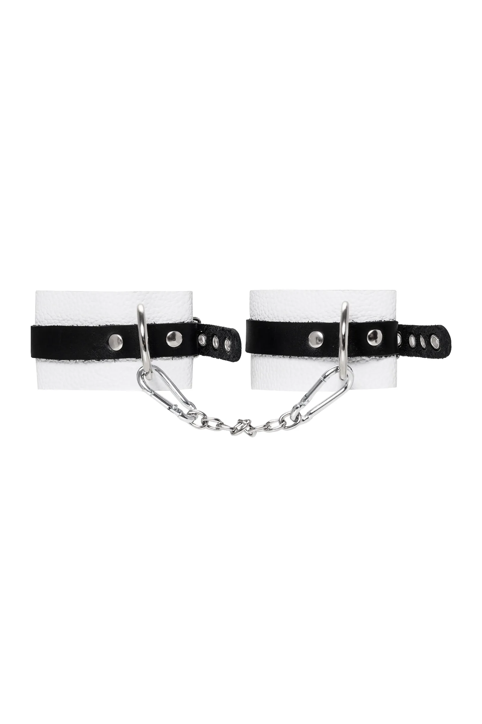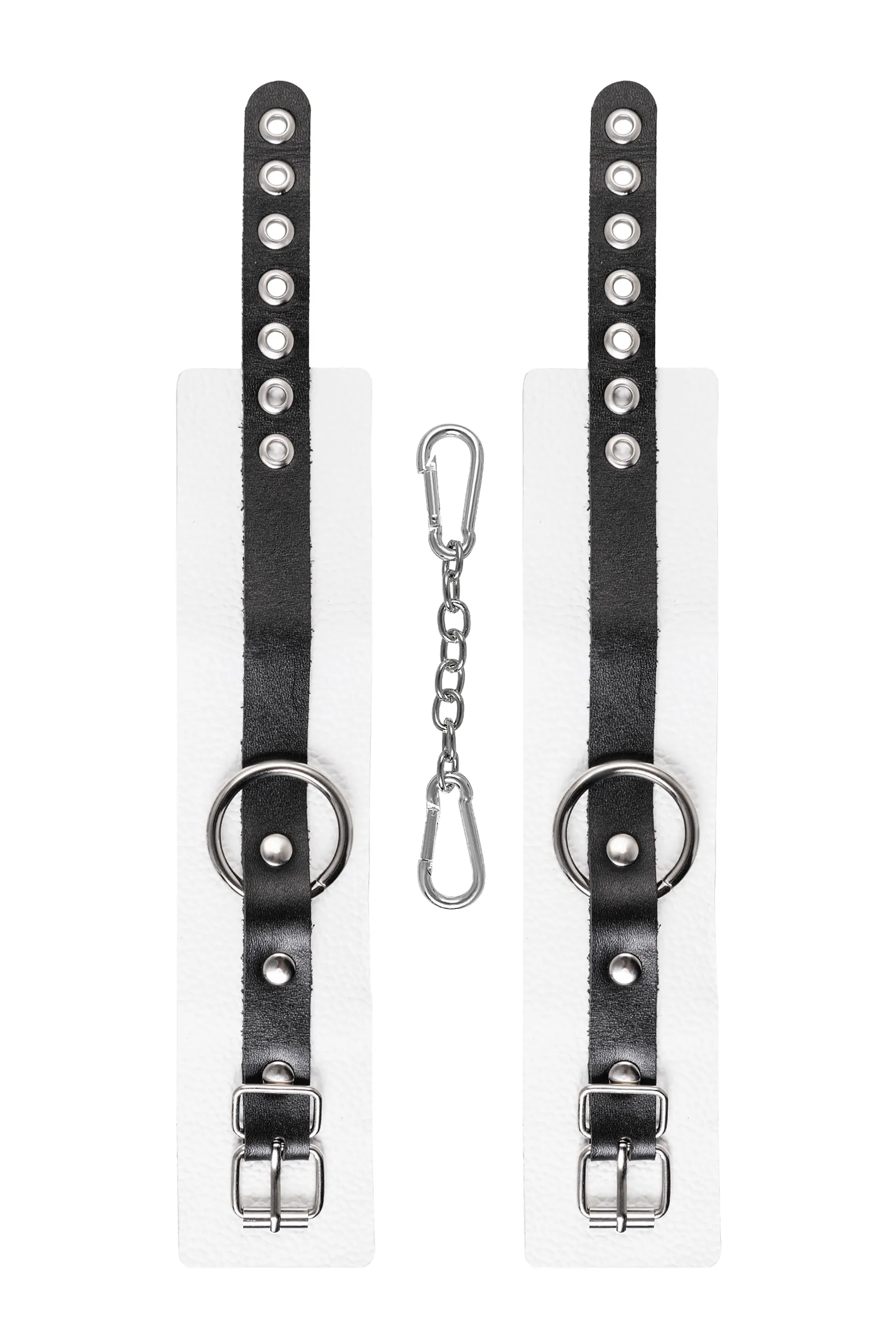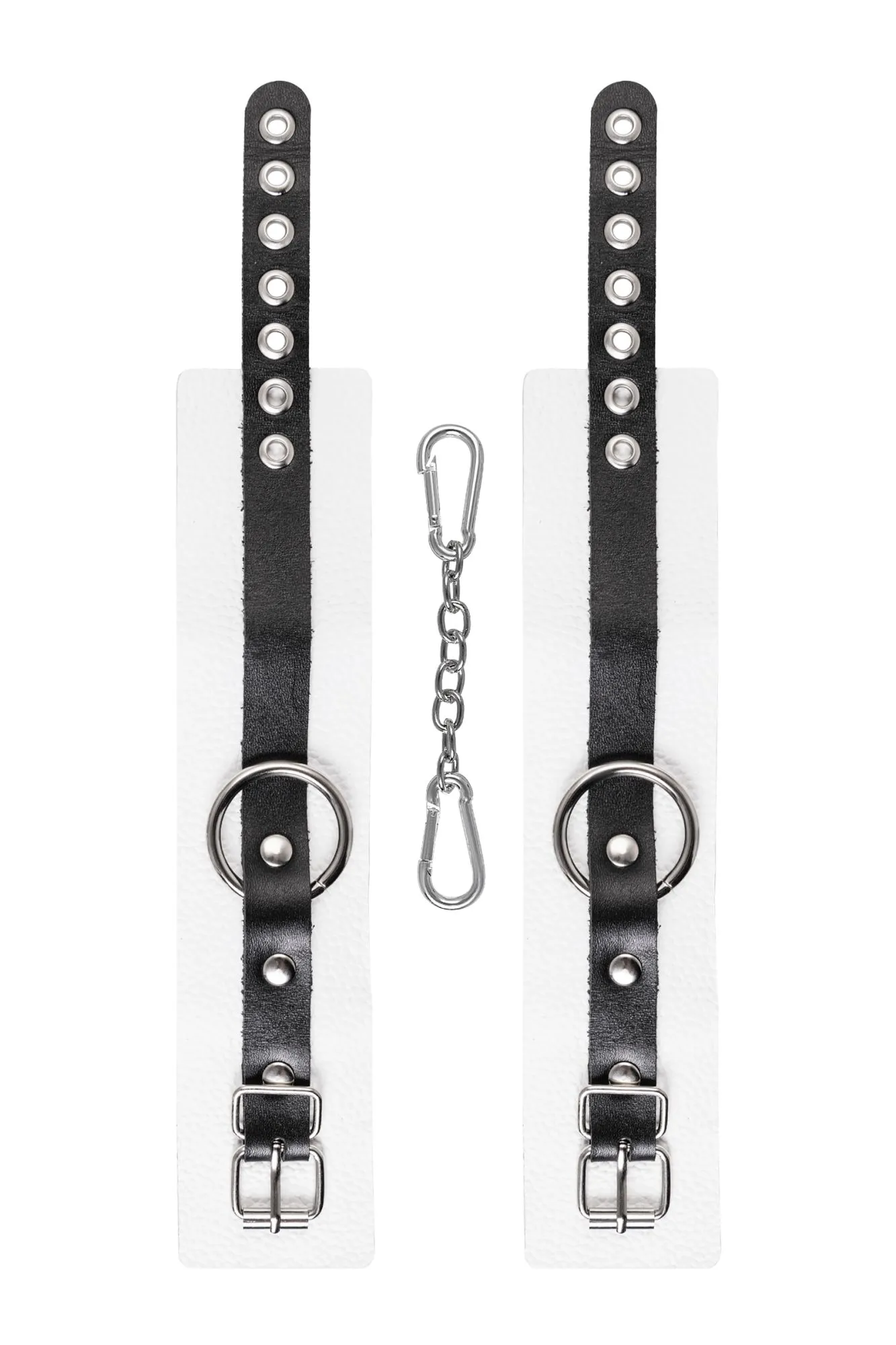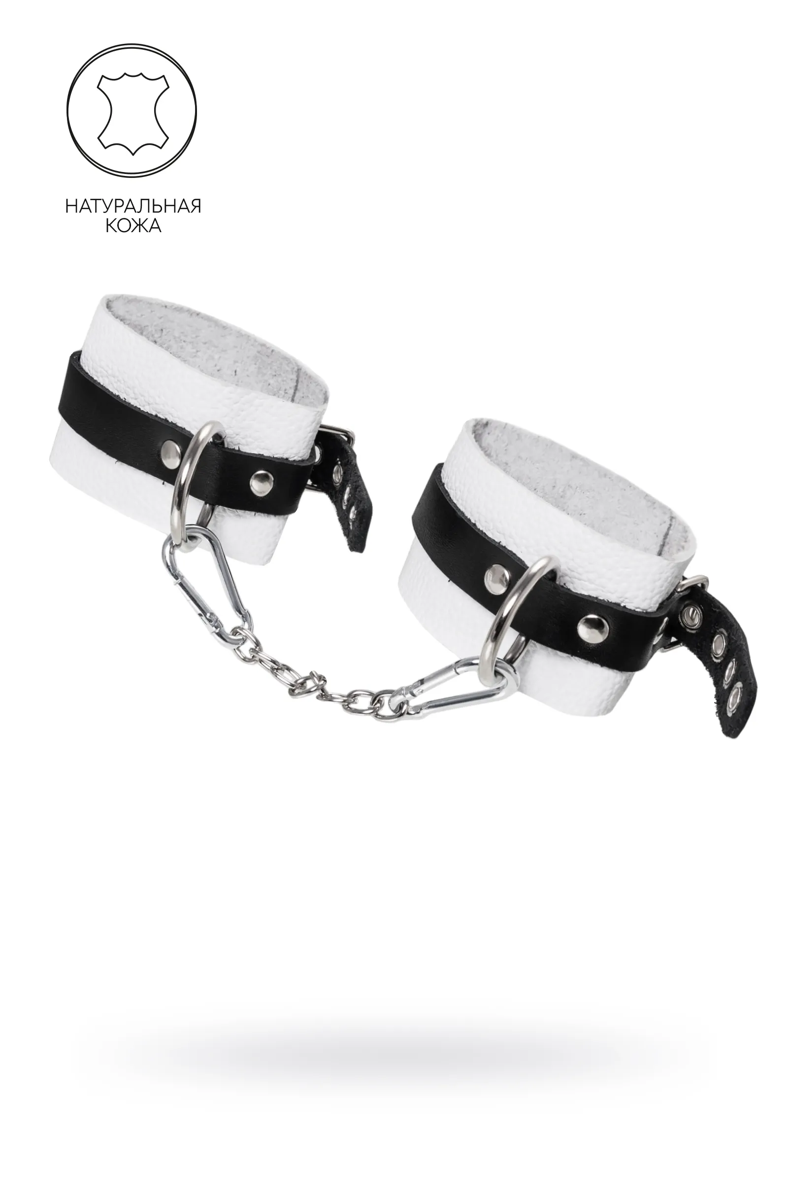 Мягкие оковы с жёсткими ремешками от Pecado помогут обездвижить партнера во время сексуальных прелюдий или жестких БДСМ-играх. Наручники изготовлены полностью из белой, натуральной кожи. Ремешки выполнены из чёрной жёсткой кожи, украшены люверсами. Выделка материала произведена вручную. Ремешки и широкая манжета хорошо держат форму: не тянутся и не мнутся. Качественная металлическая фурнитура добавляет лоска изделию, а аромат натуральной кожи повышает градус возбуждения. Благодаря широкому запасу регулировок, можно подобрать необходимый обхват. Аксессуар удобно застегивать и легко расстегивать. При правильном использовании не оставляет следов на теле и не доставляет дискомфорта. Манжеты оков соединяется между собой помощью двух карабинов и съемной стальной цепочки. Подходит и для женских, и для мужских ног. ● 100% натуральная кожа. ● Ручная работа. ● Износостойкий, тактильно приятный материал. ● Надежная высококачественная фурнитура. ● Универсальный размер. ● Ширина манжет - 5,5см Длина манжет - 25см Длина сцепки - 24см