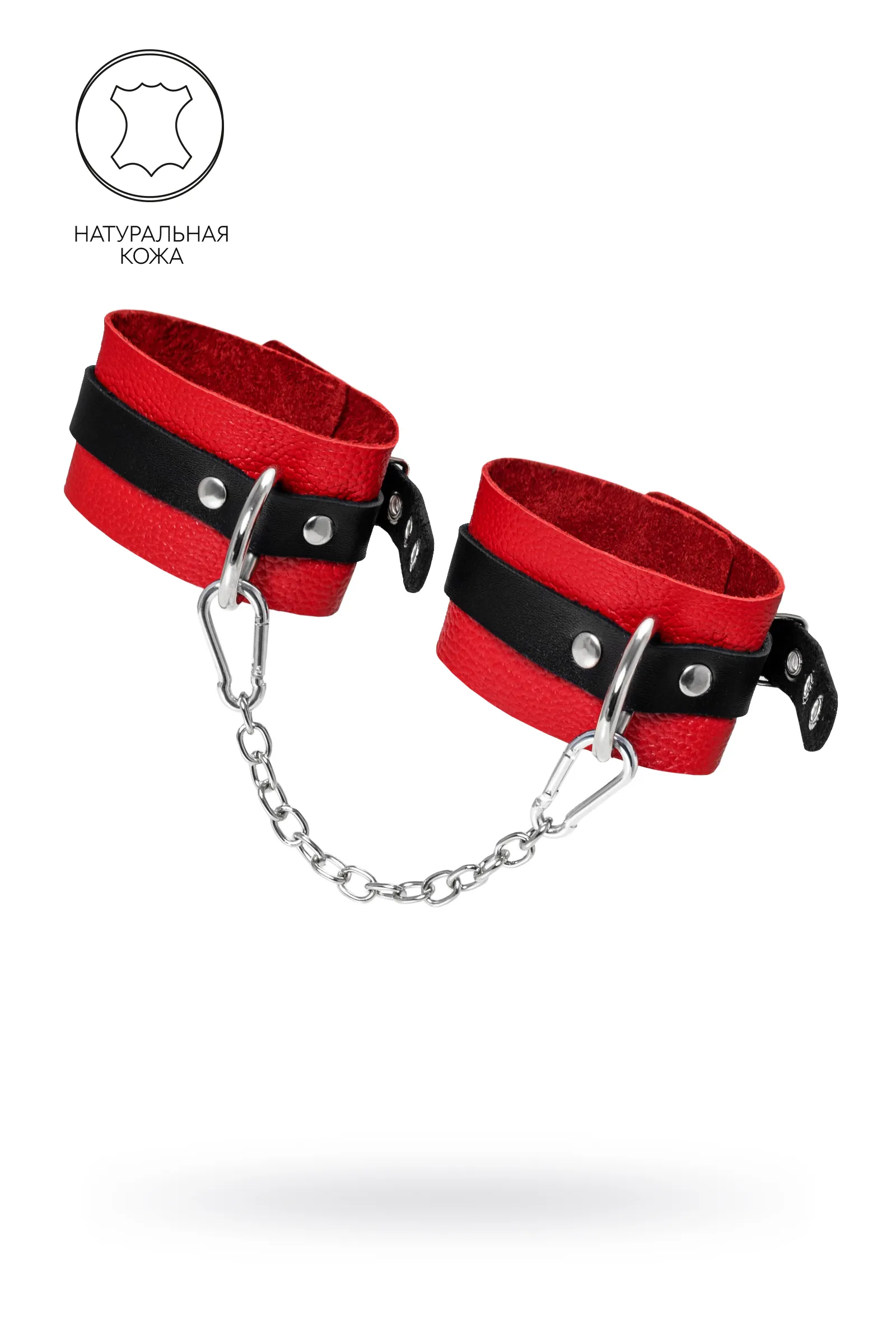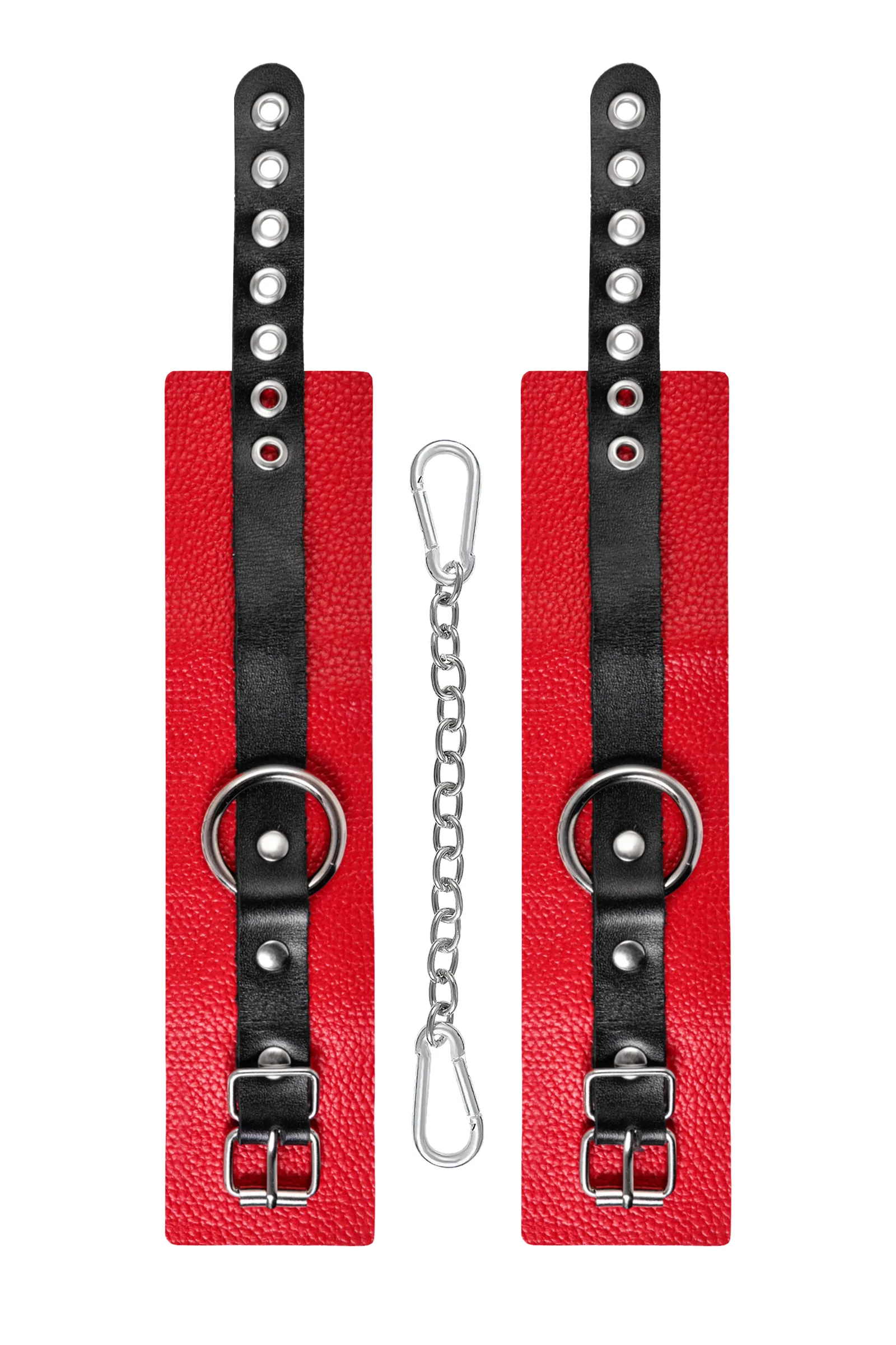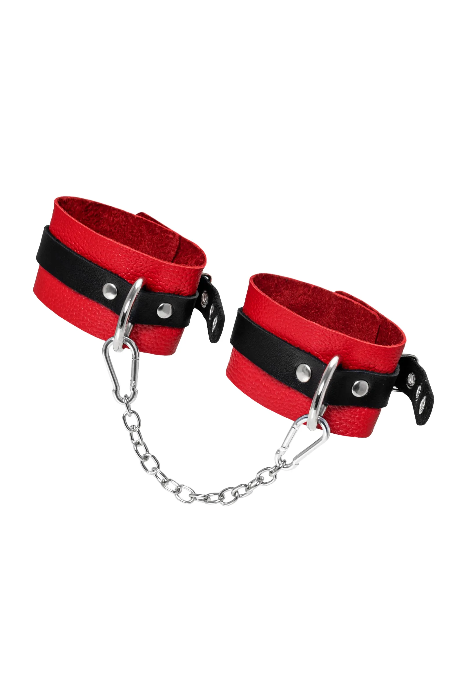 —Оковы Pecado BDSM, мягкие, с одним ремешком с люверсами, натуральная кожа, красно-чёрные