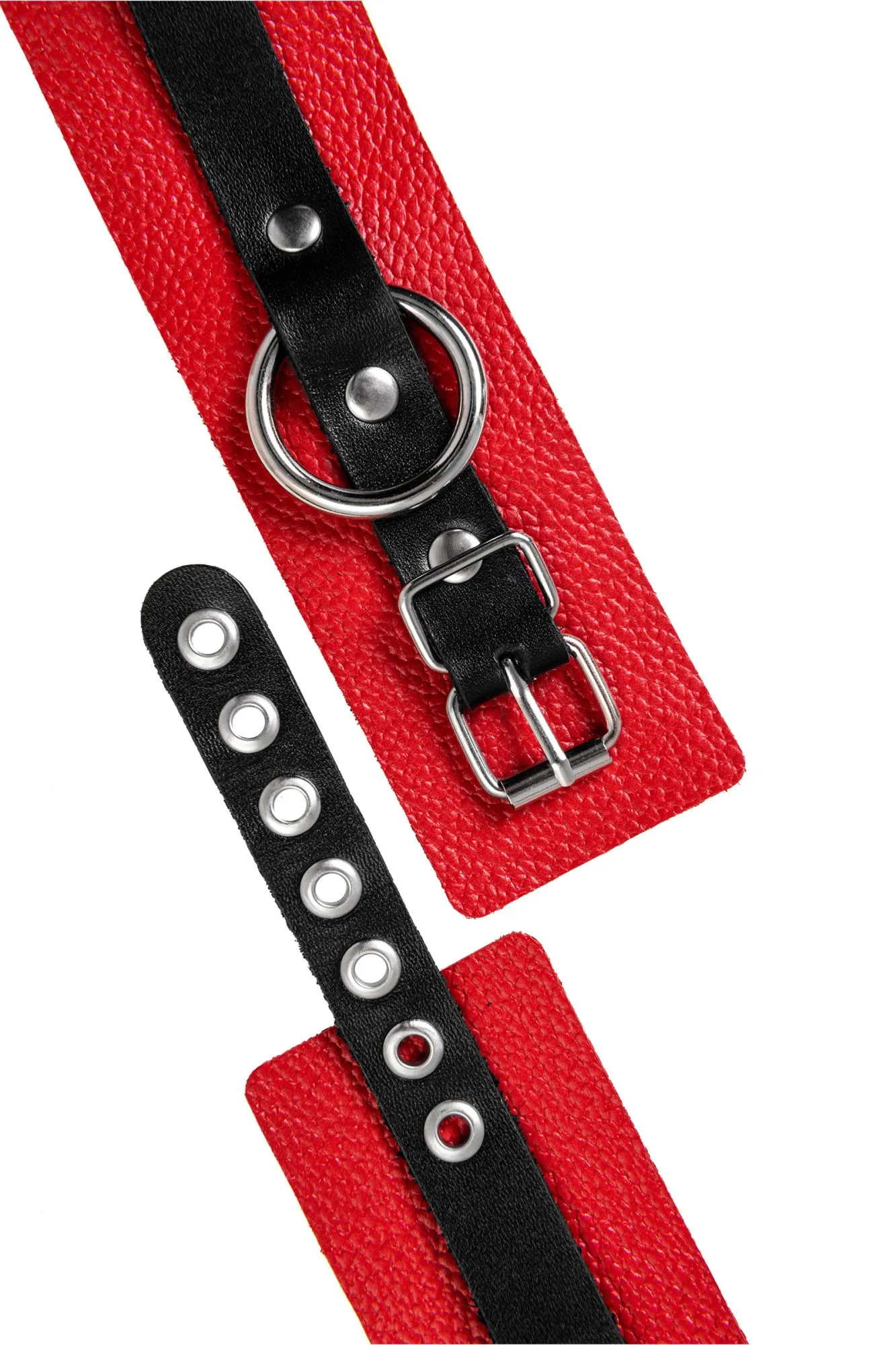 Оковы Pecado BDSM, мягкие, с одним ремешком с люверсами, натуральная кожа, красно-чёрные