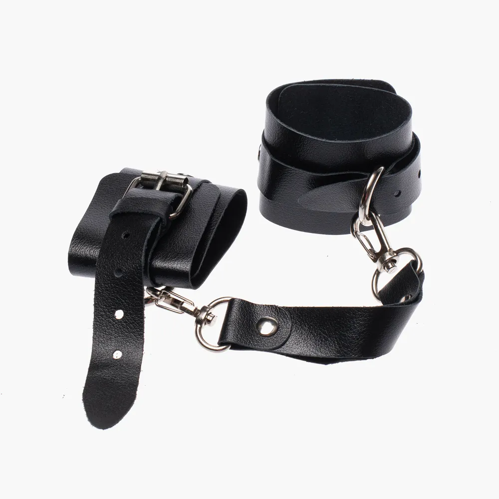 Специальные наручники Вайлдкэт из мягкой кожи - это Ваш помощник в реализации самых необузданных фантазий в БДСМ - сессиях. Они не нарушают кровообращение, просты в применении и обеспечивают надежную фиксацию. Данная модель изготовлена из жесткой натуральной кожи с металлической фурнитурой. Фиксируются при помощи ремешков.