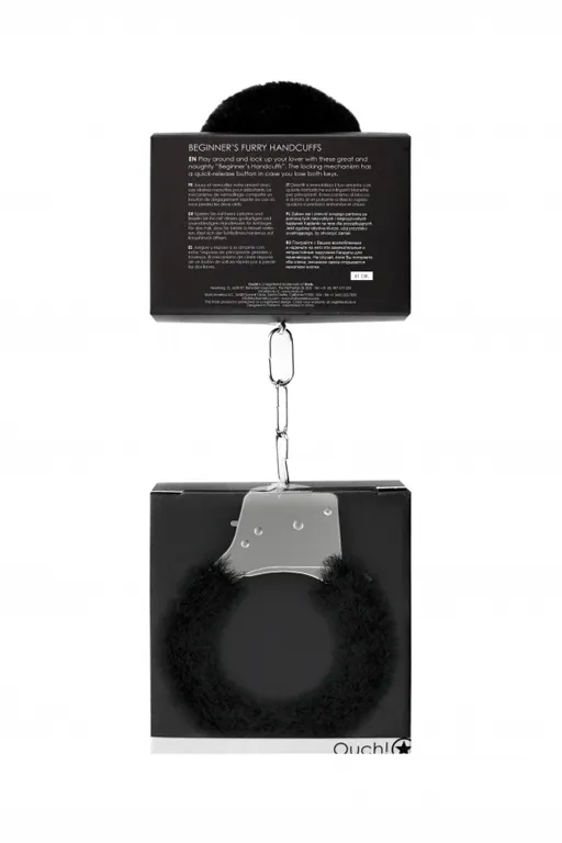 Наручники Beginner's Handcuffs Furry - специализированное приспособление для надежной фиксации и обездвиживания партнера при эротических ролевых играх и практиках БДСМ. Классические металлические наручники с меховой обивкой могут открываться как при помощи ключей, входящих в комплект, так и с помощью механизма непосредственно на них. Кольца соединены между собой короткой неэластичной сцепкой.