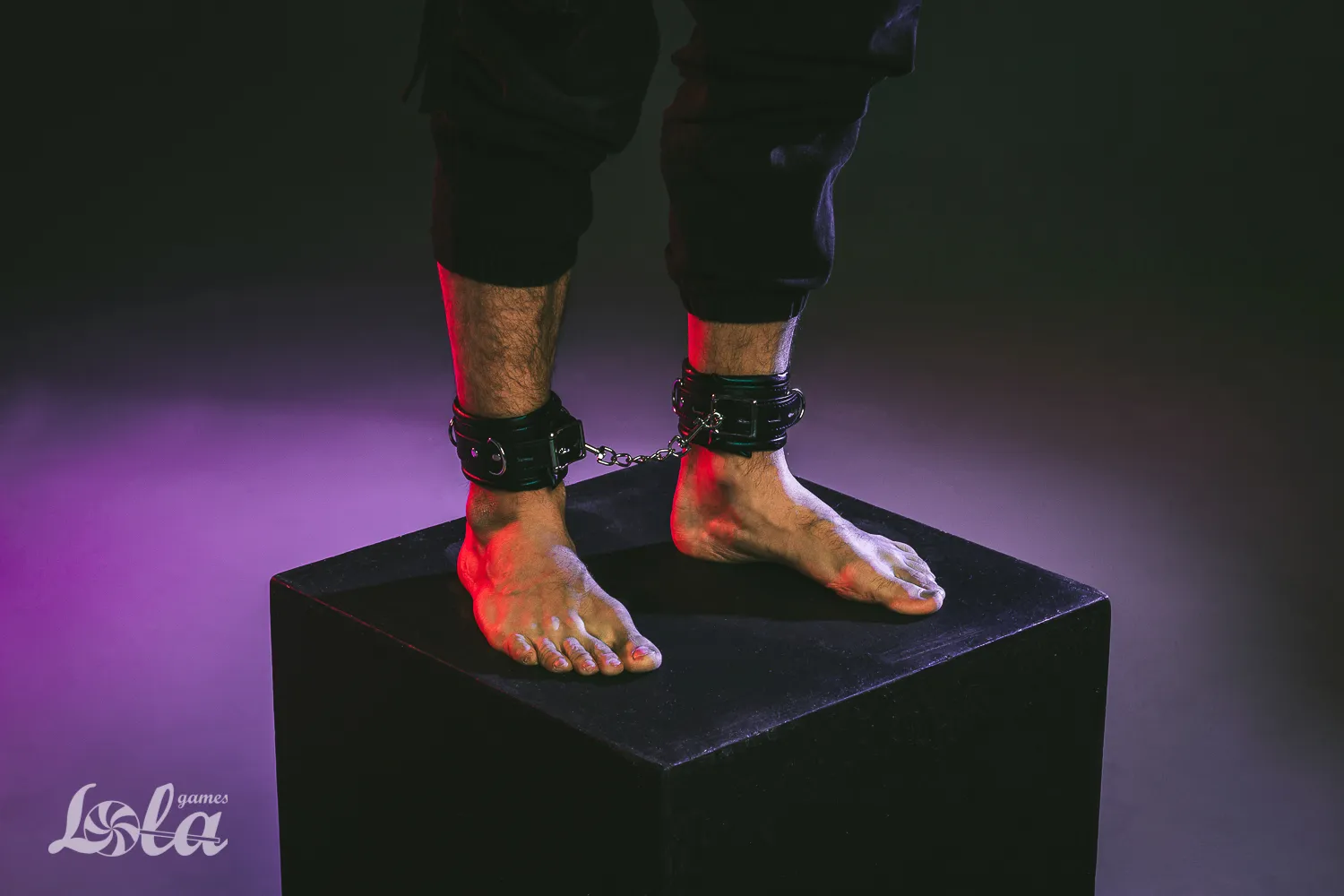 Обезоружить партнера и показать ему, кто сегодня руководит сценарием, можно с помощью одного простого приспособления - поножей. Натуральная ПВХ-материал нежно захватывает ногу в приятный плен, подчеркивая изысканность и пикантность ситуации, и дарит совершенно новые ощущения, связанные с невозможностью полноценно двигаться. Если же жертвой сегодня будете не Вы, то сможете вдоволь насладиться и поиграть с каждой частью тела своего пленника. Поножи очень прочные, поэтому Вы можете прикрепить их к любому элементу мебели, возле которого будет разгораться ваша страстная игра. Общая длина: 40 см, Ширина: 6 см.