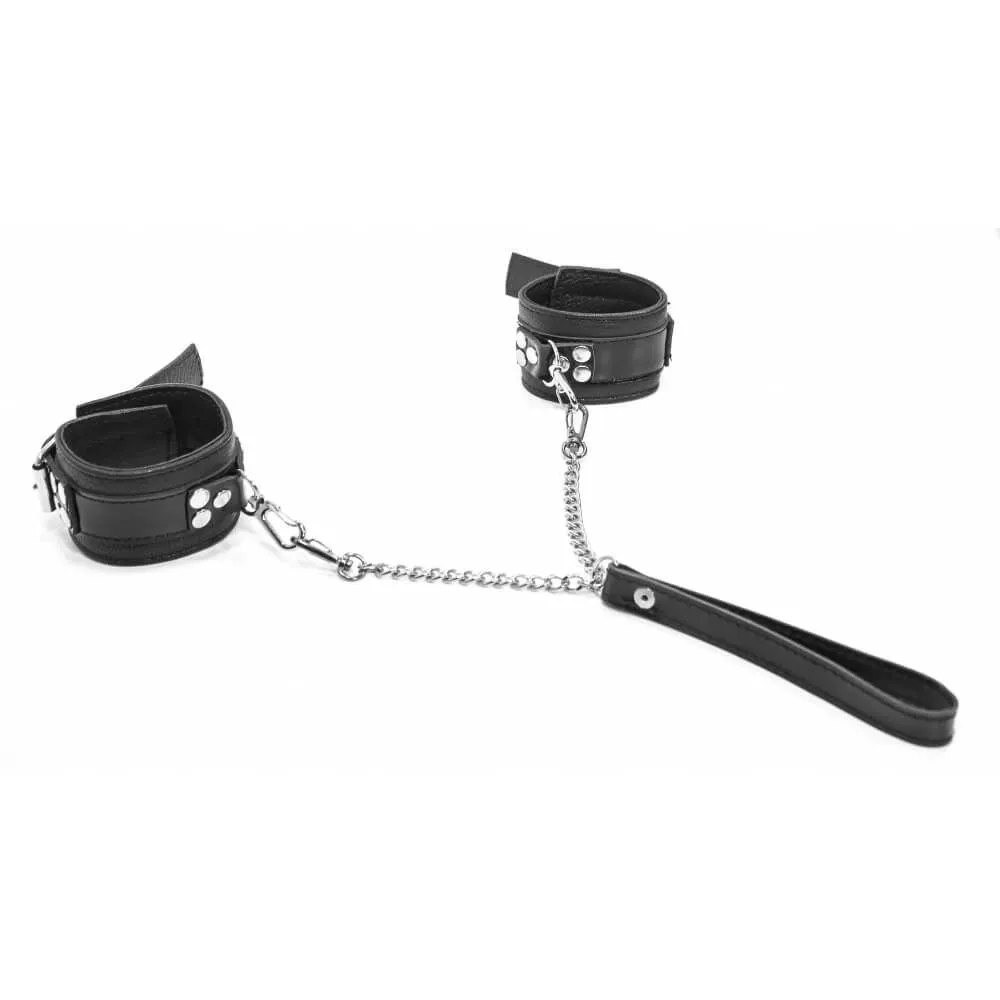Наручники декоративные с поводком Индиго черные, с цепью