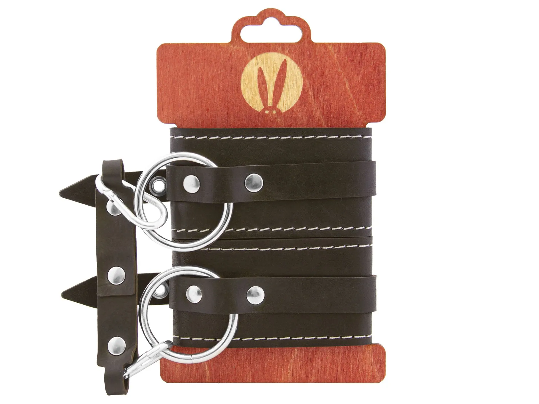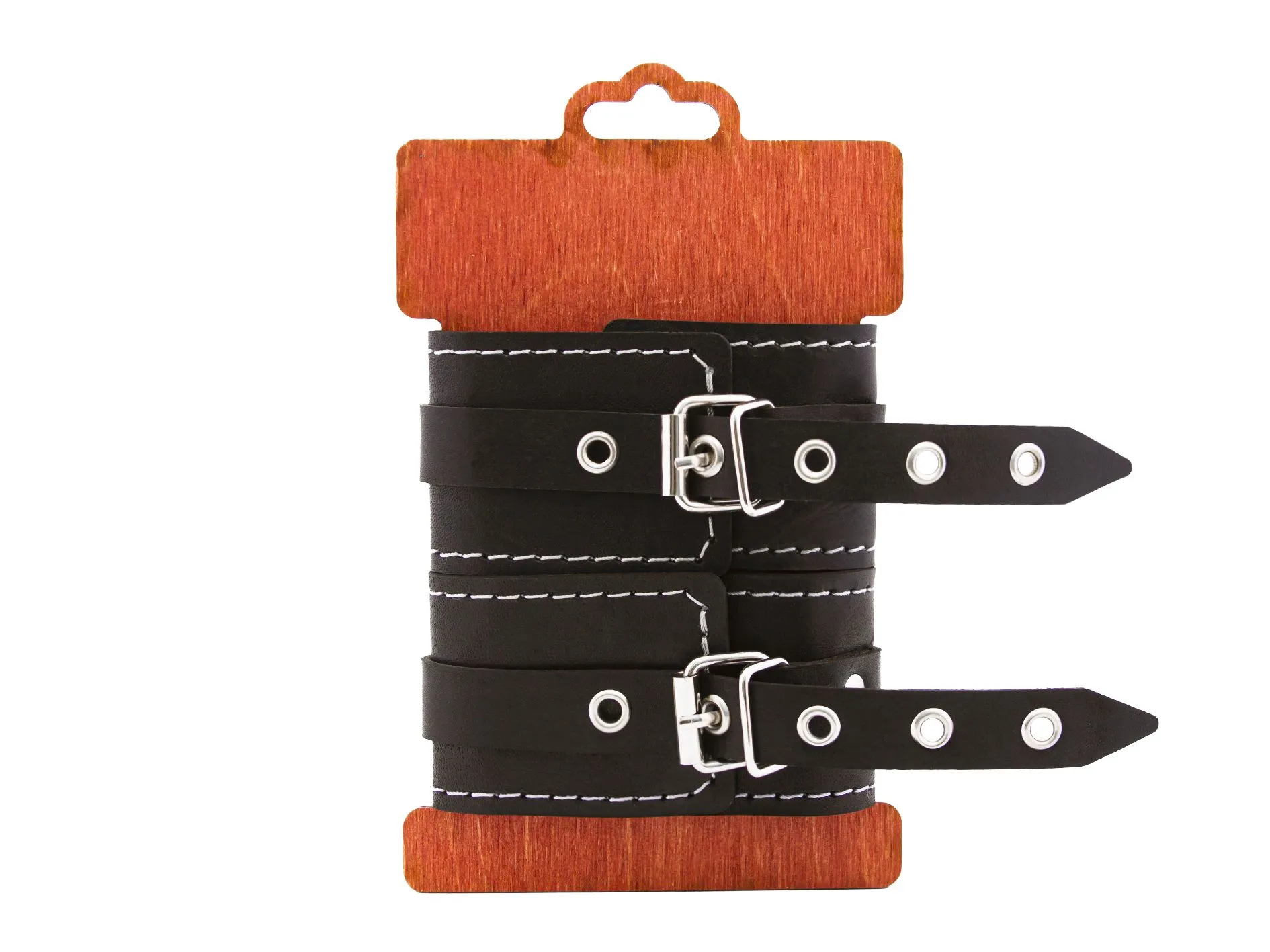 Двухслойные оковы от бренда Pink Rabbit выполнены из натуральной кожи черного цвета и декорированы белой строчкой. Такой аксессуар можно использовать во время игр с элементами БДСМ, чтобы частично обездвижить своего партнера. Потеряв возможность двигать ногами или руками, Вы или Ваш партнер не сможете сопротивляться настойчивым ласкам, отмахиваться или отбиваться. Это придаст любовной игре остроты и заставит Вас испытать чувство предвкушения от действий партнера, пока Вы находитесь в его полной власти. К широким металлическим кольцам на оковах можно присоединить и другие аксессуары при помощи карабинов. Оковы регулируются по размеру при помощи ремешка с пряжкой.