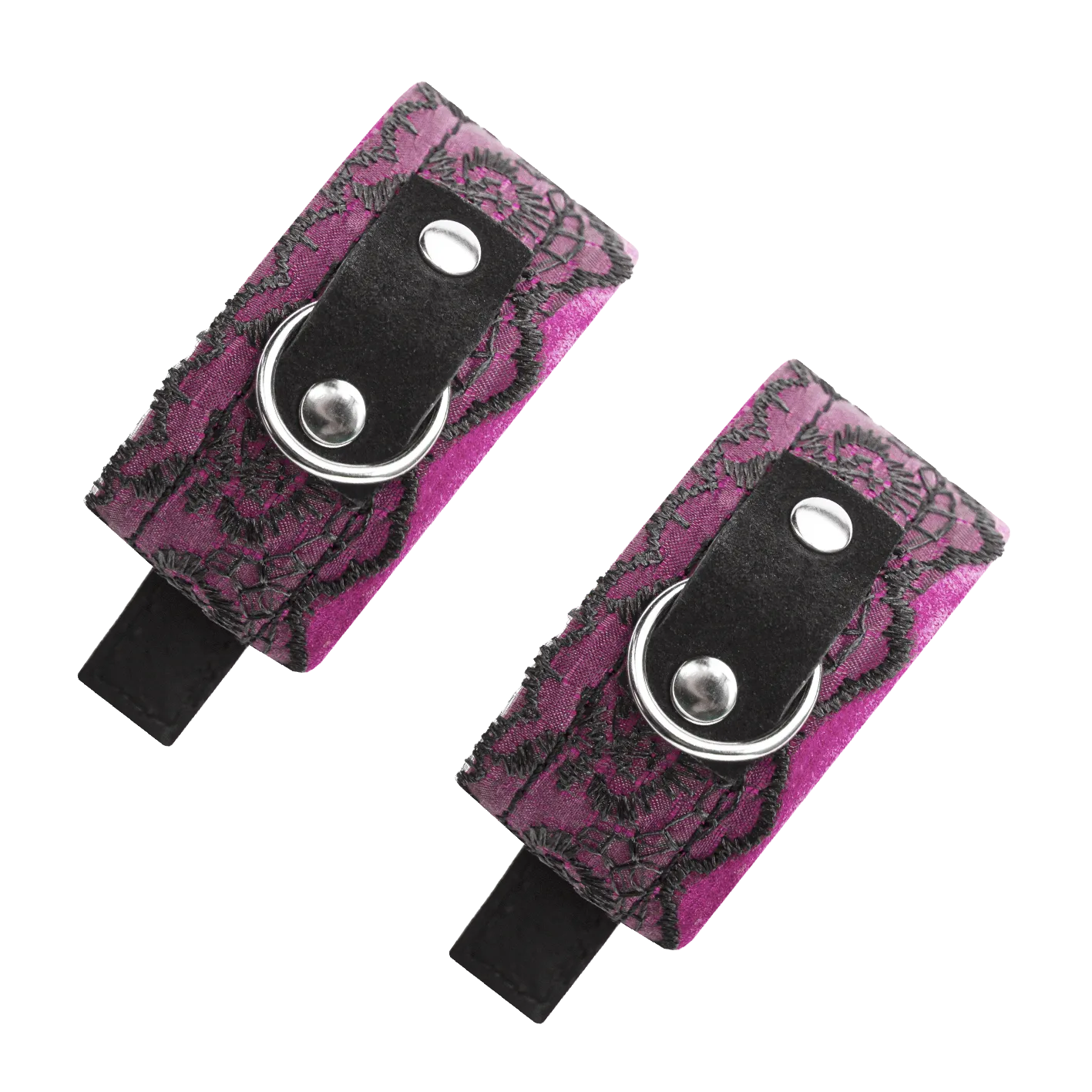 В этот комплект для БДСМ игр входят замшевые ошейник и наручники, украшенные тонким кружевом. Получите полную сексуальную власть над своим партнером, ограничив его свободу этим невероятным комплектом, и он не сможет покинуть Вас без Вашего разрешения. На аксессуарах есть крупные металлические полукольца, к которым можно будет присоединить поводок или другие бондажные аксессуары.