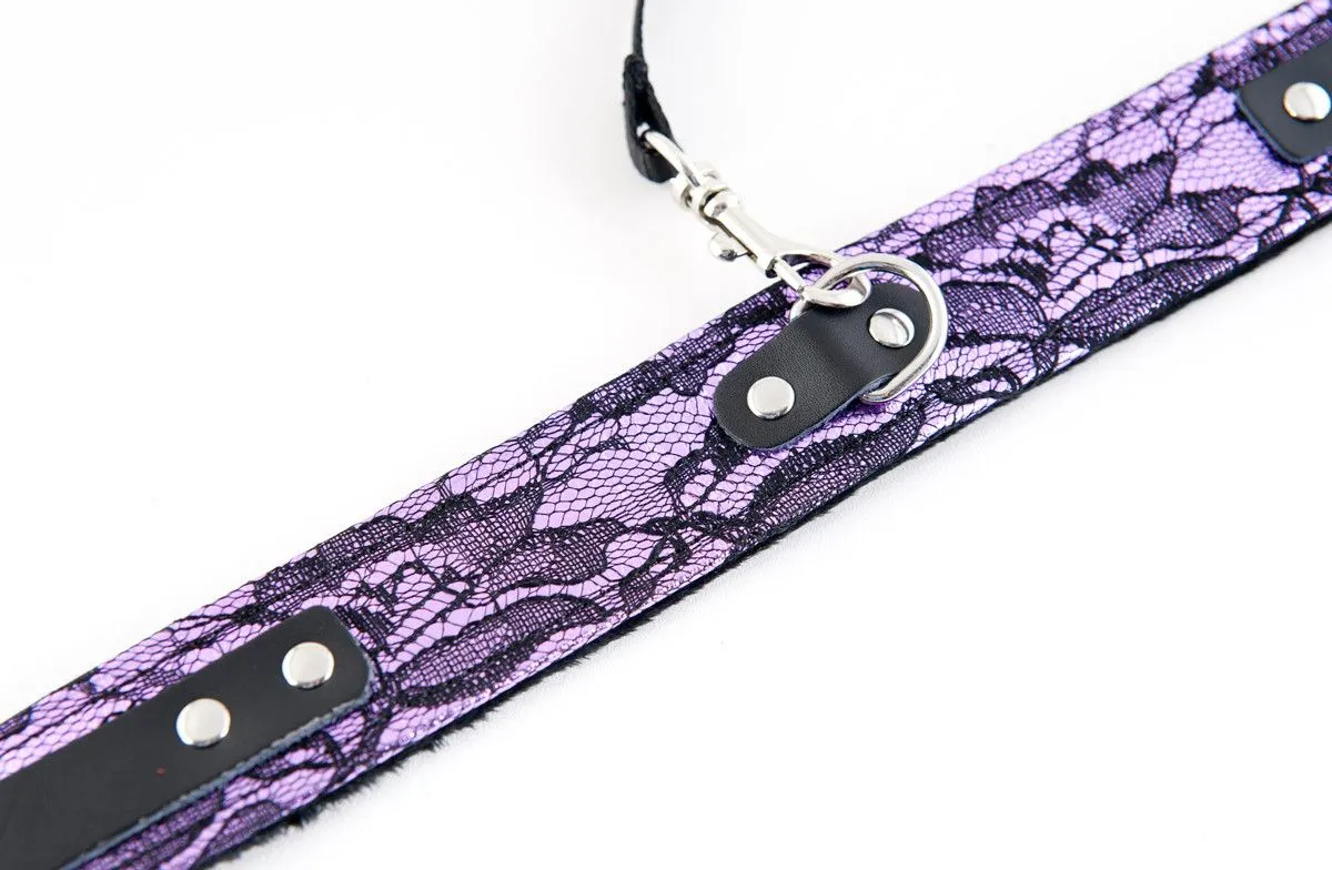 Кружевной ошейник с поводком — изящный атрибут для ограничения свободы партнёрши. С таким ошейником легко не только управлять покорностью рабыни, но и представлять, что всецело подчиняется настоящая королевская особа.