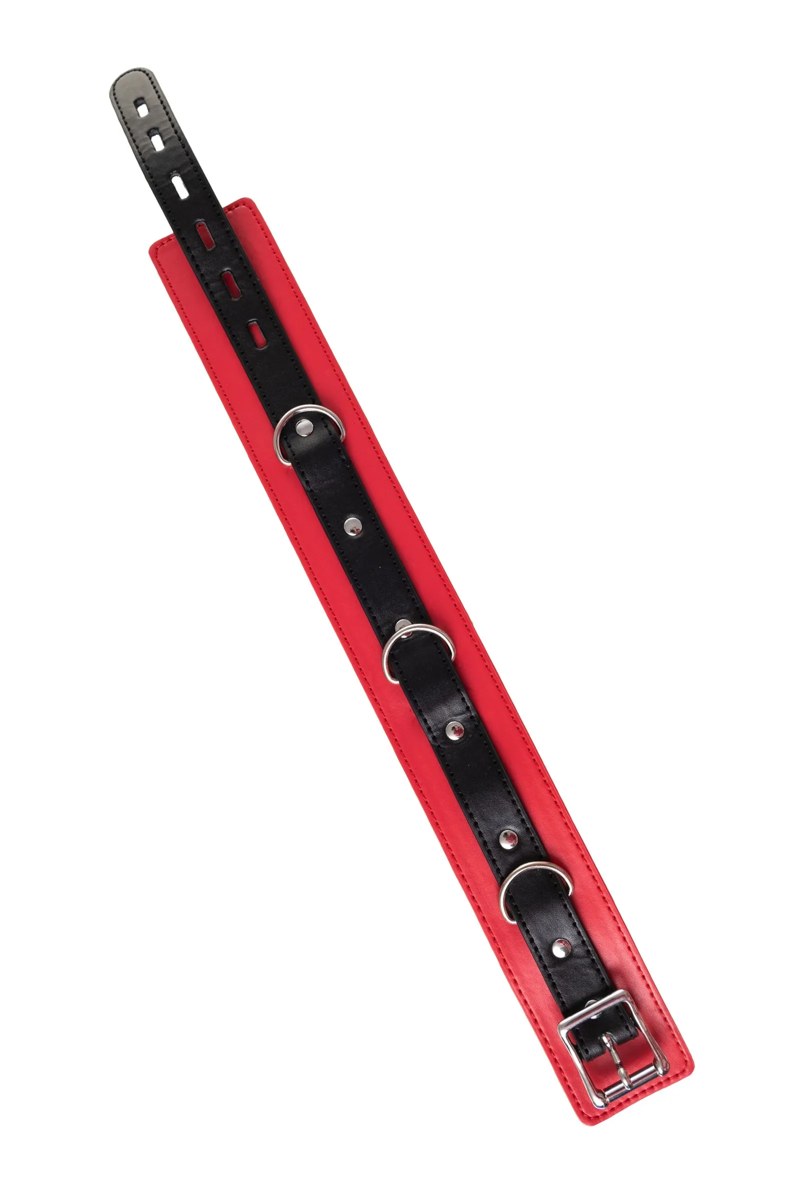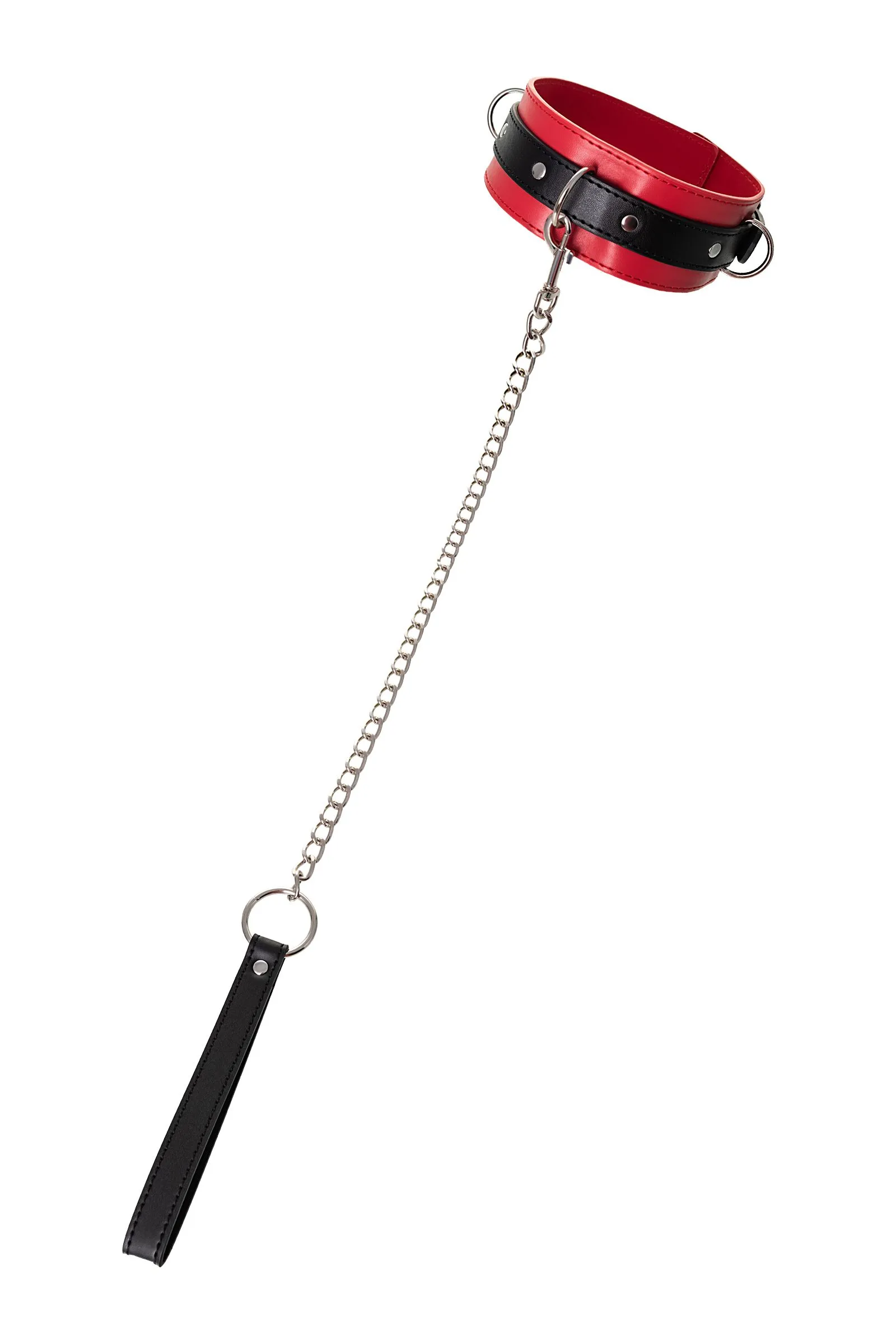 Атрибут для вашего лучшего перфоманса – яркий ошейник. Это не только символ подчинения и доверия, но и изюминка, способная разукрасить вашу интимную жизнь игрой. В этом ошейнике сочетаются элементы, возбуждающие страсть и фантазию: кожа красного и черного цветов и отделка металлическими элементами. Ошейник прекрасно вписывается в любой эротический образ – будь на вас сексуальный комплект белья, или только помада алого цвета. Мягкая кожа нежно облегает шею, а размер легко регулируется надежной металлической пряжкой. Передать власть партнеру легко с помощью поводка длиной 80 см, который крепится к одному из колец. Играйте в доминирование и подчинение в свое удовольствие! Длина ошейника: 43,5 см Ширина ошейника: 5,5 см Длина поводка: 80 см Материал: экокожа
