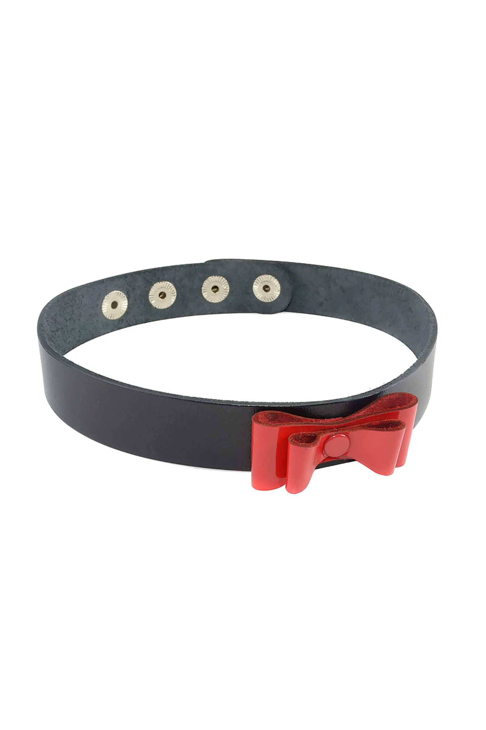 Ошейник BDSM – это атрибут покорности и полного доверия секс-партнёру. А предложив ошейник и получив согласие его надеть, приобретаете не только власть, но и огромную ответственность за другого. Какой бы ни был ошейник простой или вычурный, главное, это смысл, с которым Вы его преподносите партнёру. Простой и лаконичный ошейник чокер от Ситабелла, изготовлен из натуральной высококачественной кожи. Плотно прилегая к шее, узкой черной полосой, он элегантно украсит Вашу шею, сделав её ещё более сексуальной и притягательной. Украшение данного изделия является красный объемный бантик из лаковой красной кожи. Зафиксировать чокер на шее и отрегулировать по размеру можно при помощи кнопок, которые имеют никелевое покрытие. Ширина ошейника 2 см. Длина 41 см.