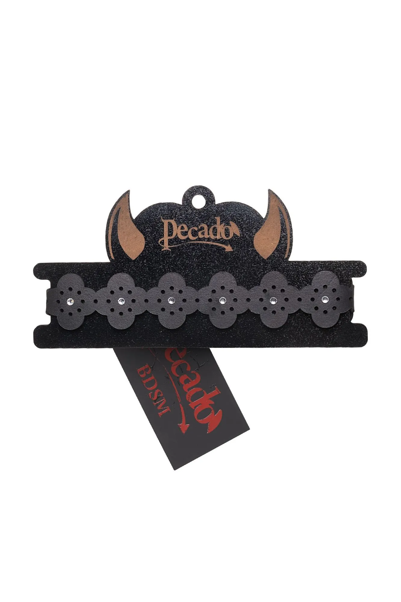 Легкий, игривый, притягательный чокер с узорами и стразами от Pecado никого не оставит равнодушным! Аксессуар изготовлен из безопасной, экологичной, натуральной кожи. Черный, износостойкий материал плотно прилегает к шее, не слетает и не оставляет следов на теле. Аромат натуральной кожи добавляет нотки дерзкого возбуждения в процессе использования. Благодаря надежной металлической пряжке чокер крепко фиксируется на необходимый обхват шеи. Аксессуар декорирован миниатюрными, сверкающими стразами. Для тех, кто желает погрузиться в мир новый чувств. ▪️ 100% натуральная кожа. ▪️ Ручная работа. ▪️ Износостойкий, тактильно приятный материал ▪️ Надежная высококачественная фурнитура. ▪️ Универсальный размер.