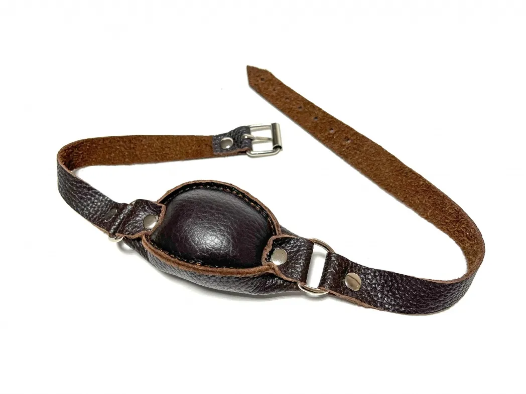 Качественный и удобный кляп, выполненный из натуральной кожи коричневого цвета. Размеры кляпа 9 х 5см, благодаря наполнителю средней жесткости этот кляп будет комфортен в использовнии. Аксессуар декорирован сварной металлической фурнитурой. Ширина ремешков 1,8см, обхват удобно регулируется с помощью металлической пряжки. Отличный аксессуар для любовной игры и новых ощущений! Материал: натуральная кожа, металл Цвет: коричневый