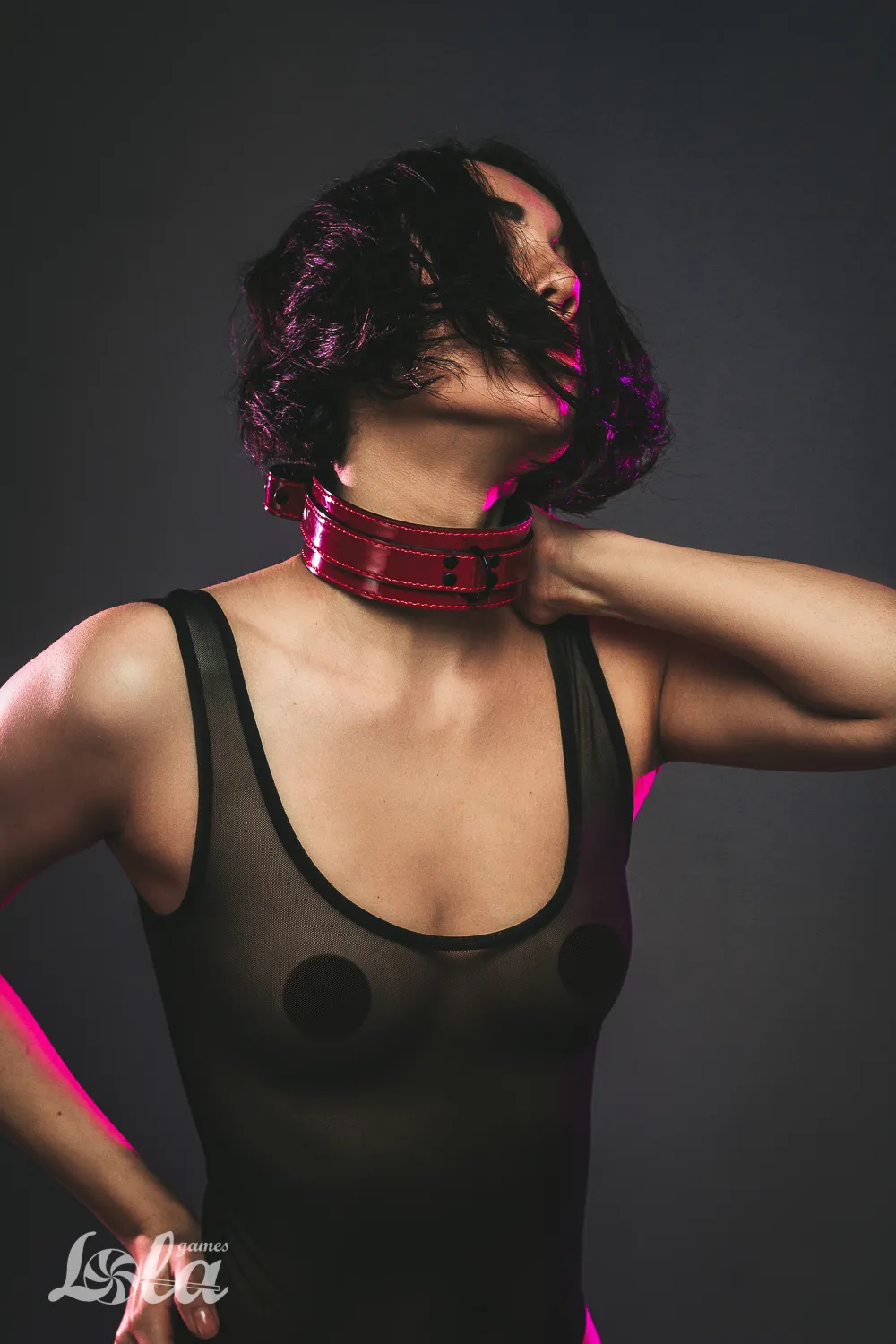 С нашими эффектными БДСМ-наборами вы точно не заскучаете. Развлекайтесь и получайте удовольствие от новых ощущений. Прекрасные атрибуты обострят ваши чувства и увеличат страсть. Ошейник - является самым ярким атрибутом БДСМ. Материал: ПВХ, Металл. ширина ошейника - 5 см, Максимальная длина - 55 см в обхвате.  Ошейник без поводка!
