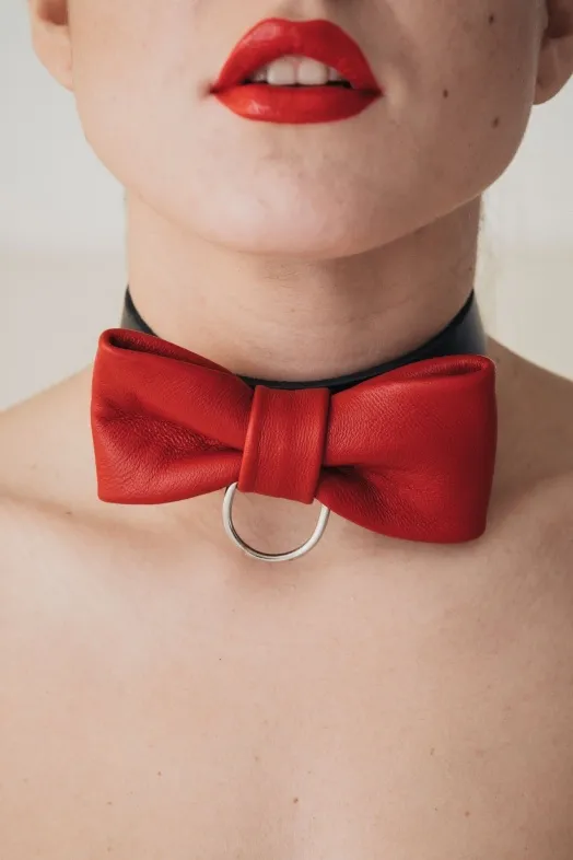 Черный ошейник с красной бабочкой идиально подойдет как для мужчин так и для женщин. В ошейник вставлено 3 D-кольцо, с которым фетиш-изделие соединяется с бандажом или поводком. Характеристики: изготовлен из натуральной кожи, длина ошйника- 39 см, ширина ошейника- 1,5 см, застёжка с пятью отверстиями для регулировки размера, длина бабочки- 12 см, максимальная ширина бабочки- 6 см. Упаковка: картонная подложка.