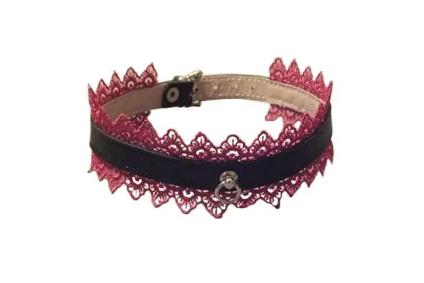 —Ошейник Подиум с цикламеновым кружевом и кольцом, чёрный