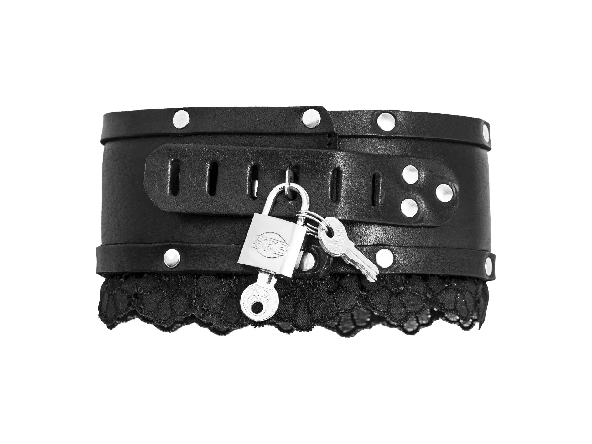 Ошейник с кружевом - это великолепный аксессуар, который прекрасно будет смотреться с эротическим костюмом. Также ошейник может стать символом подчинения в БДСМ играх. Особой пикантности ошейнику придает то, что он может закрываться на навесной замочек.