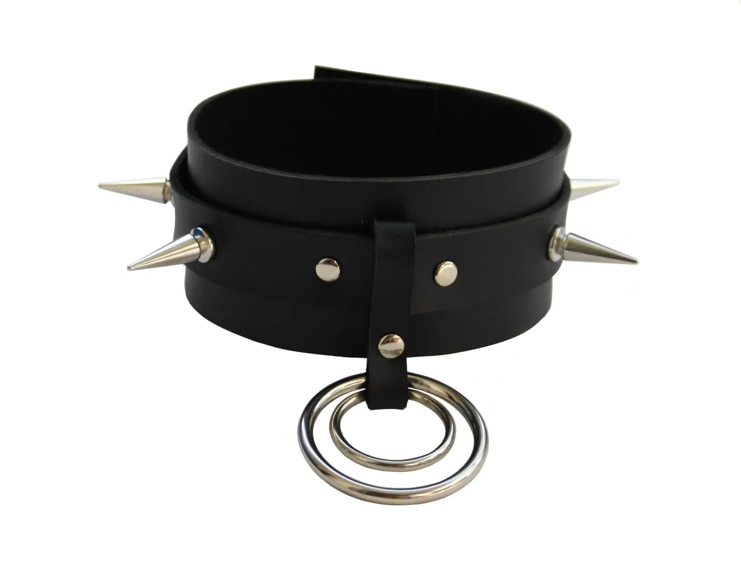 Ошейник от бренда Pink Rabbit сделан из натуральной черной кожи и декорирован четырьмя металлическими шипами и заклепками. Также у него есть два кольца, к которым можно будет присоединить поводок или другие БДСМ аксессуары. Он понравится тем, кто предпочитает интимные игры с элементами БДСМ, ведь он добавит образу сексуальности и дерзости и идеально дополнит любой ролевой эротический костюм. Такой ошейник можно носить и в повседневной жизни, чтобы подчеркнуть свой уникальный стиль.