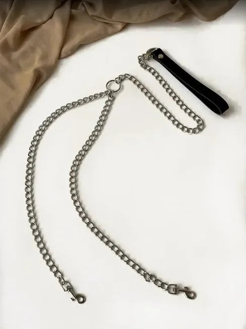 Поводок - это аксессуар для игр с элементами БДСМ, благодаря которому Вы всегда будете иметь полный контроль над своим партнером. У поводка есть петелька для запястья, выполненная из натуральной кожи, а также два карабина, при помощи которого к поводку можно присоединить ошейник или другие аксессуары. При помощи такого аксессуара можно будет ограничить движения партнера, не позволяя ему отходить от Вас далеко, одергивать его при непослушании или направлять в нужную сторону.