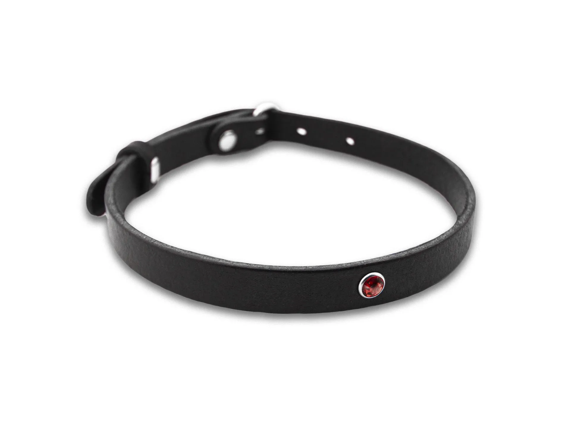 Чокер черного цвета с красной стразой из натуральной кожи будет прекрасным украшением, которое подчеркнет Ваш индивидуальный стиль и акцентирует внимание на прекрасной шейке. Также он сможет послужить Вам во время ролевых игр с элементами БДСМ, это заметно разнообразит Ваши любовные игры и позволит испытать новые будоражащие ощущения.