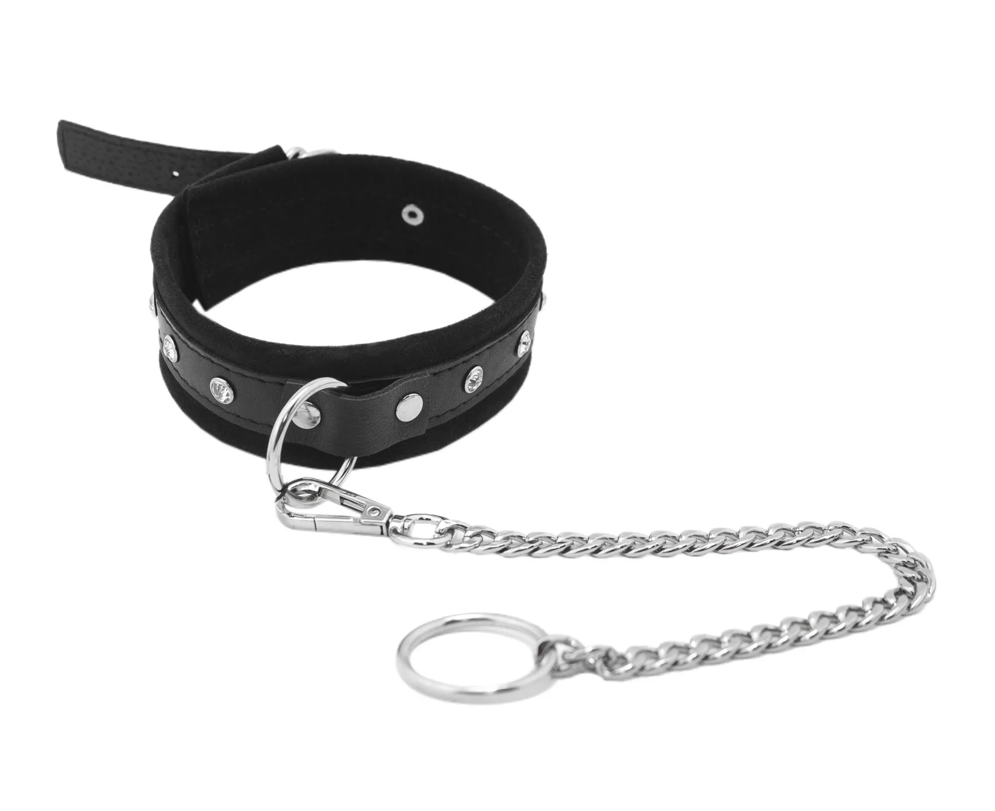 <comment>Этот ошейник выглядит одновременно стильно и сексуально - мне нравится сочетание страз и замши!</comment>