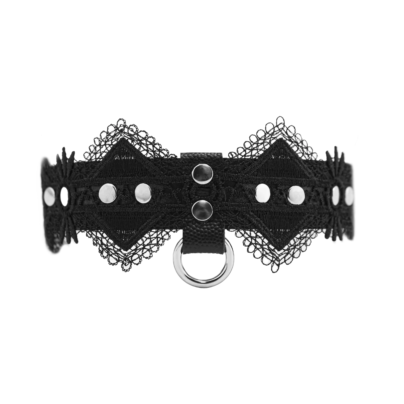 Чокер выполнен из натуральной кожи и декорирован мягким кружевом. Такой аксессуар можно носить с повседневной одеждой, чтобы придать своему образу дерзости и сексуальности. Также он будет отлично смотреться вместе с ролевым эротическим костюмом во время любовной игры с партнером. Чокер акцентирует внимание на прекрасной шейке и подчеркнет страстность Вашей натуры. Длина чокера регулируется при помощи ремешка с пряжкой, поэтому Вы сможете подогнать его под нужный размер. Есть колечко, чтобы при необходимости пристегнуть поводок - всё для простора вашей фантазии.