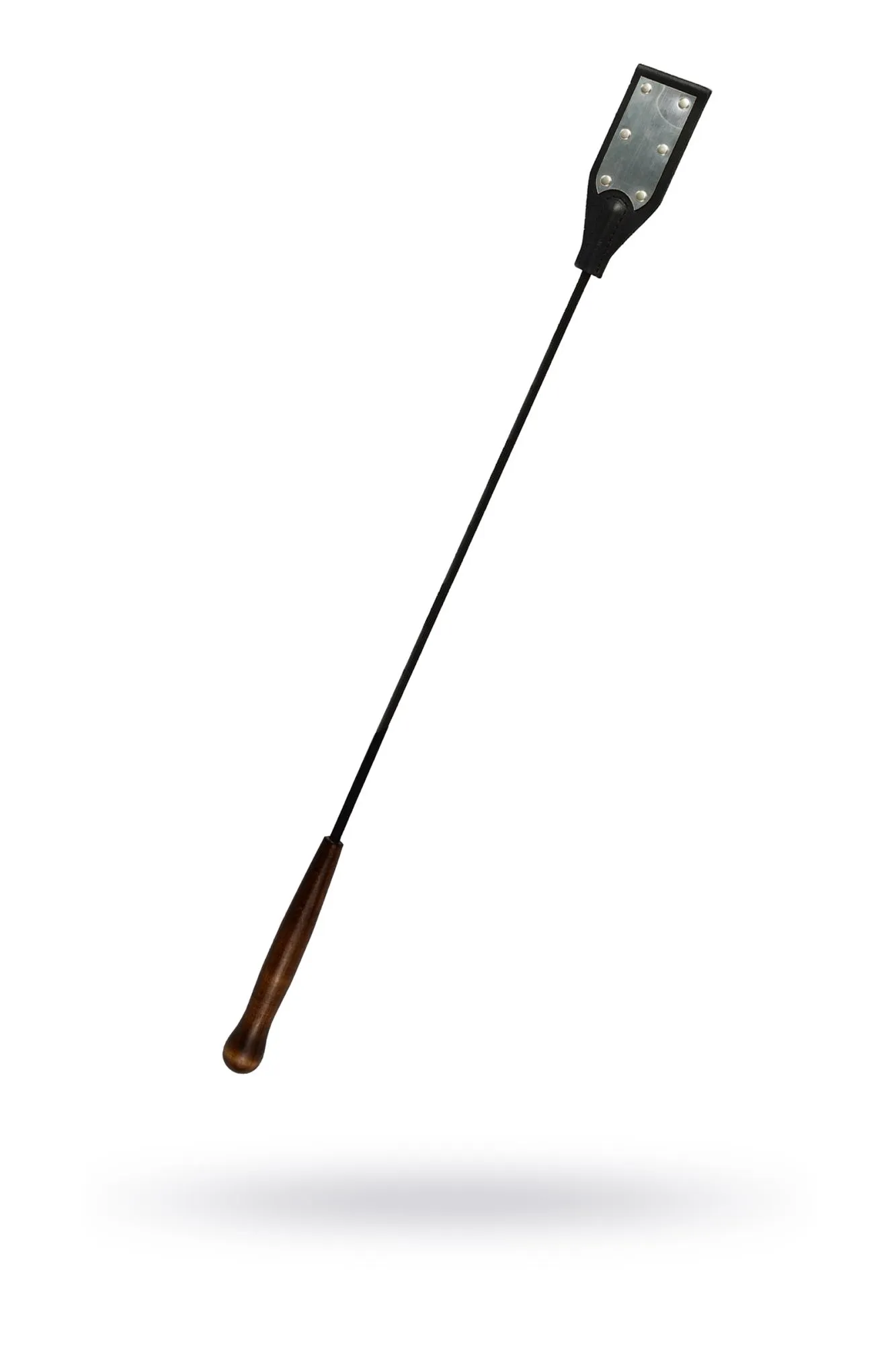 Стек из натуральной кожи с декоративной отделкой под металл и удобной деревянной ручкой.