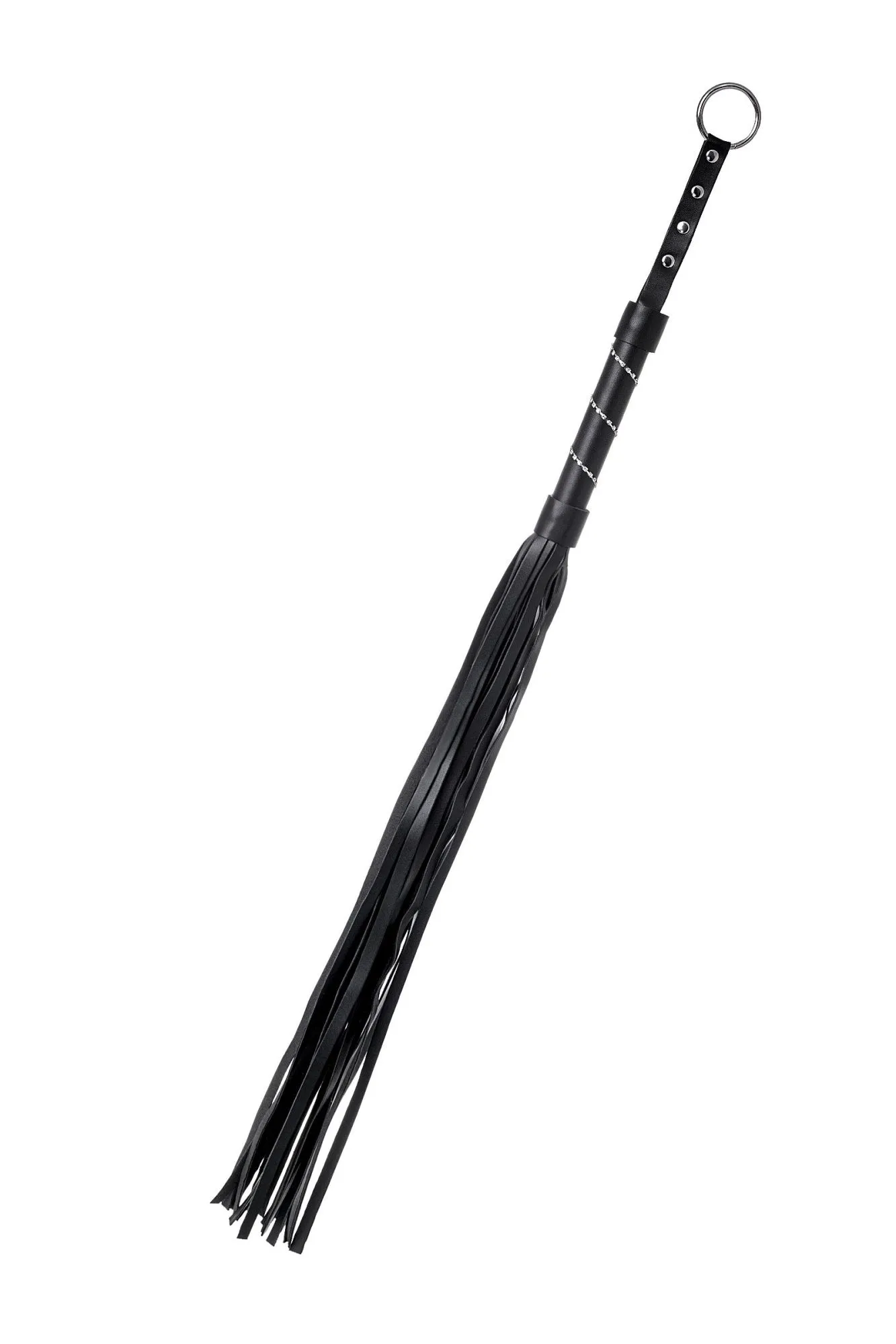 Доминирование и подчинение с помощью ограничения свободы — это еще не все, что вы можете сделать друг с другом. Черный флоггер пригодится и для разогрева, и для ощутимого наказания непослушного партнера. Оптимальный размер, эстетика и функционал – далеко не все достоинства этого изящного девайса. Ручка из черной PU кожи украшена стразами, удобно лежит в руке. Гладкие хвосты рабочей части плети выполнены из мягкой черной PU кожи. Петля служит для более удобного захвата. Сочетание напряжения, власти и элегантности. С этой плеткой можно наказать провинившегося сабмиссива и еще раз продемонстрировать кто в паре главный. Материал: PU кожа Цвет: черный Общая длина: 64 см Рабочая длина: 48,5 см