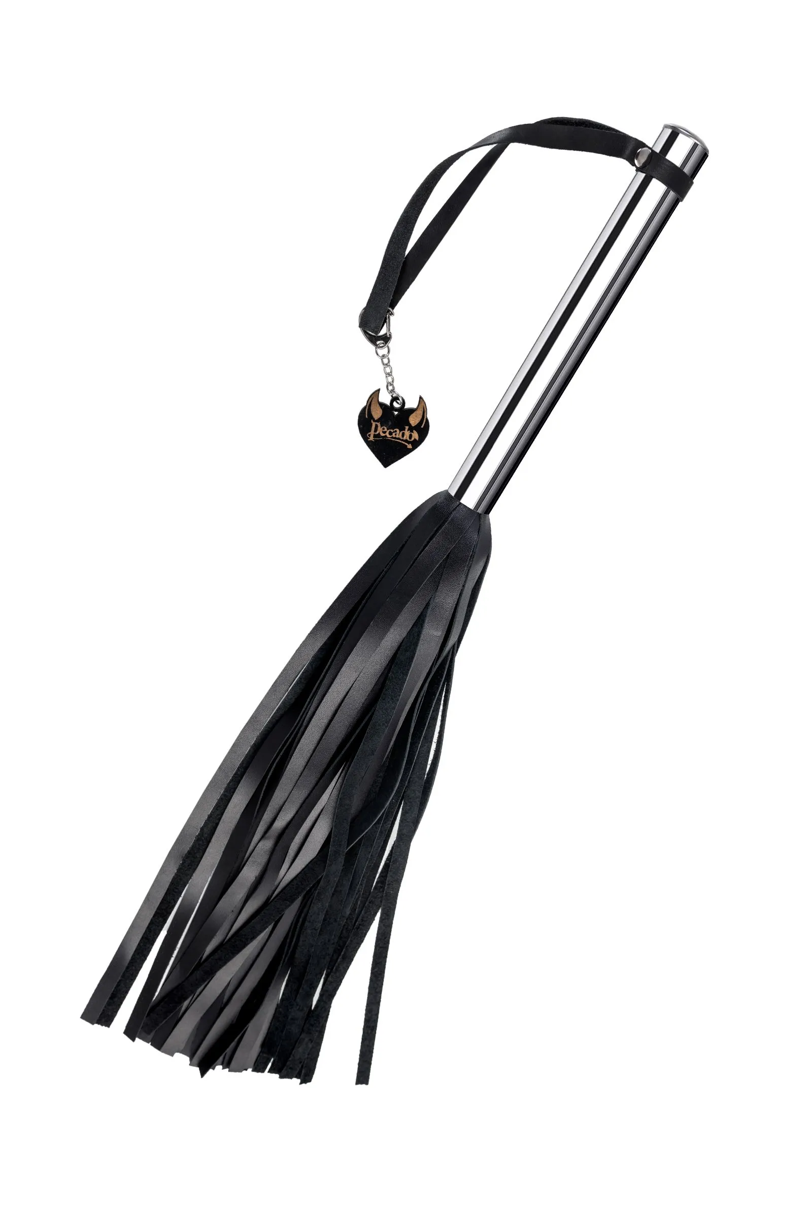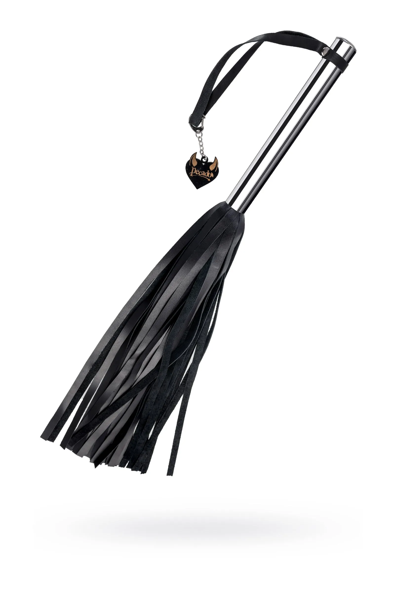 —Плеть большая Pecado BDSM, металлическая рукоять, чёрные хлысты, натуральная кожа
