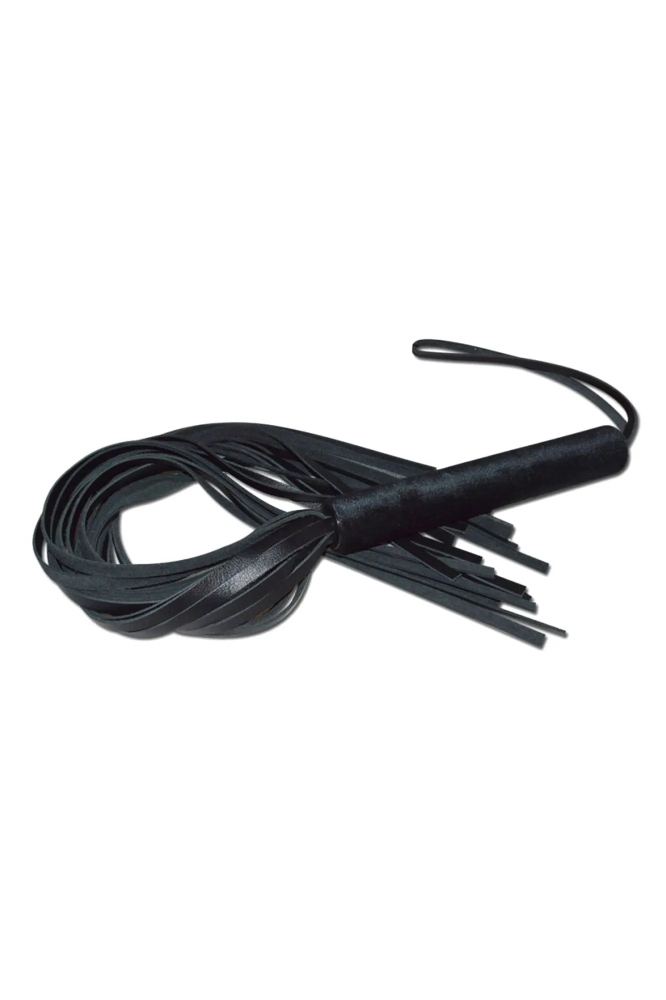 Классическая чёрная плеть – это один из основных атрибутов ролевых игр, при помощи которого, можно и поощрить, поглаживая, и наказать, более сильными ударами, и просто разогреть тело, для обострения тактильной и эмоциональной чувственности. Плеть имеет жёсткую 18 см ручку. Она обтянута бархатистой велюровой тканью. На конце рукояти располагается кожаная петля, для ношения плети на запястье или хранения изделия в подвешенном состоянии. Длинная 45 см хвостовая часть, состоит из 22-24 плоских лент из натуральной кожи Ладья, которые надёжно зафиксированы на рукояти, что даёт возможность использовать данный аксессуар в самых темпераментных и страстных ролевых играх. Хвосты плети довольно мягкие, что позволяет использовать данный девайс, не только опытным пользователям, но и новичкам. Общая длина изделия около 63 см. Длина рукояти 18 см; Ø 2,1 см