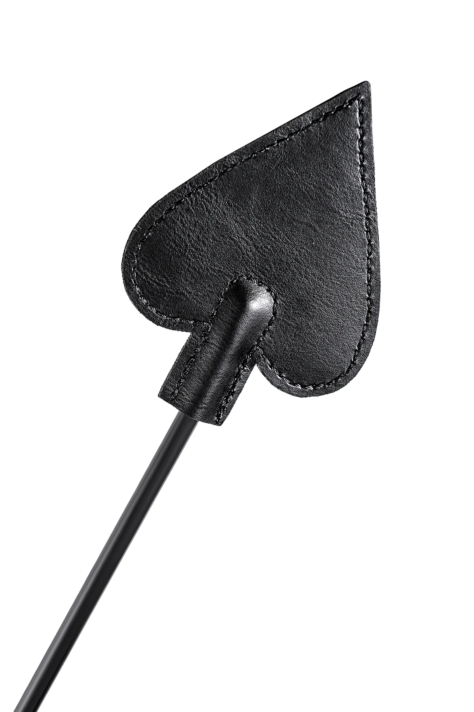 Доминирование и подчинение с помощью ограничения свободы — это еще не все, что вы можете сделать друг с другом. Черный стек с наконечником в форме сердечка-пики пригодится для ощутимого наказания непослушного партнера. Хлесткие точечные шлепки или указка – заигравшийся сабмиссив быстро поймет свою ошибку. Каждый неверный шаг, звук или поворот головы будет немедленно наказан с помощью жесткого стека из PU кожи. Сочетание напряжения, власти и элегантности – с этим стеком можно наказать провинившегося сабмиссива и еще раз продемонстрировать кто в паре главный. Материал: PU кожа Цвет: черный Общая длина: 36 см Длина наконечника: 8 см Ширина наконечника: 7 см