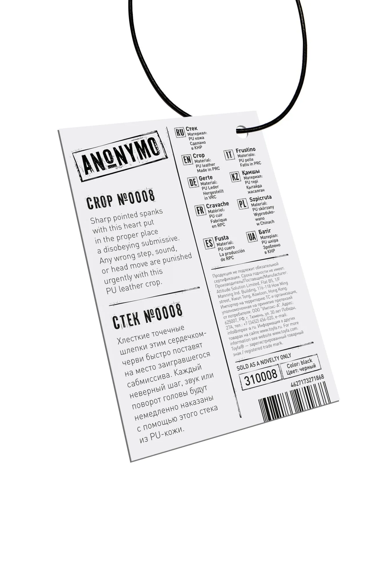 Доминирование и подчинение с помощью ограничения свободы — это еще не все, что вы можете сделать друг с другом. Черный стек с наконечником в форме сердечка-черви пригодится для ощутимого наказания непослушного партнера. Хлесткие точечные шлепки или указка – заигравшийся сабмиссив быстро поймет свою ошибку. Каждый неверный шаг, звук или поворот головы будет немедленно наказан с помощью жесткого стека из PU кожи. Сочетание напряжения, власти и элегантности – с этим стеком можно наказать провинившегося сабмиссива и еще раз продемонстрировать кто в паре главный. Материал: PU кожа Цвет: черный Общая длина: 35 см Длина наконечника: 4 см Ширина наконечника: 7 см
