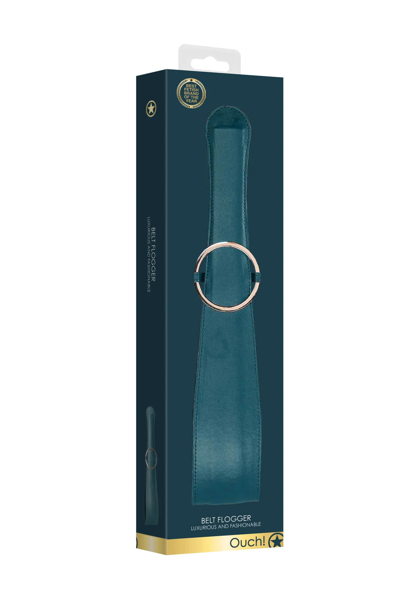 Шлепалка Ouch Ouch! - Belt Flogger – Green- ударный девайс для эротических ролевых игр и практик БДСМ. Ударная часть имеет прямоугольную форму, плавно перетекающую в рукоять. Шлепалка выполнена в элегантном зеленом цвете, который отлично дополняет золотая вставка в виде круга.