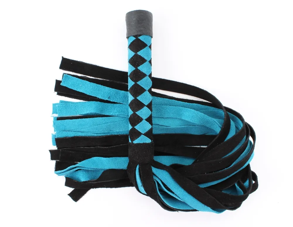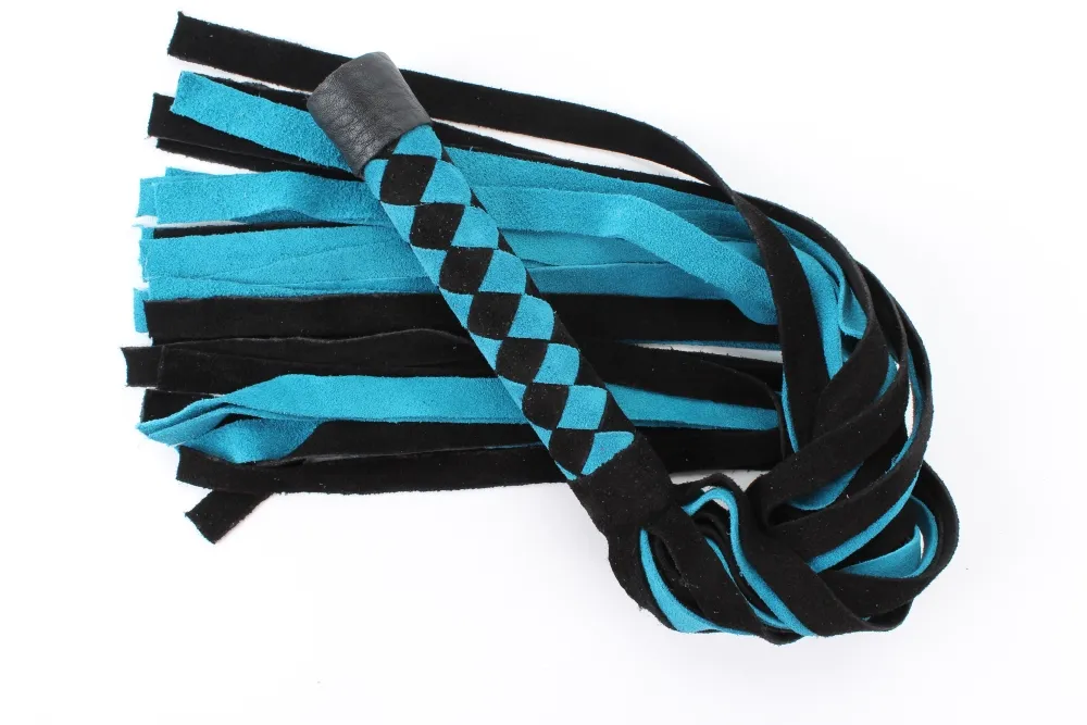 Плеть изготовлена из натуральной замши, имеет 24 хвоста длиной 42 см. Хвосты имеют вид лент шириной 1,5 см. Длина изделия- 58 см.