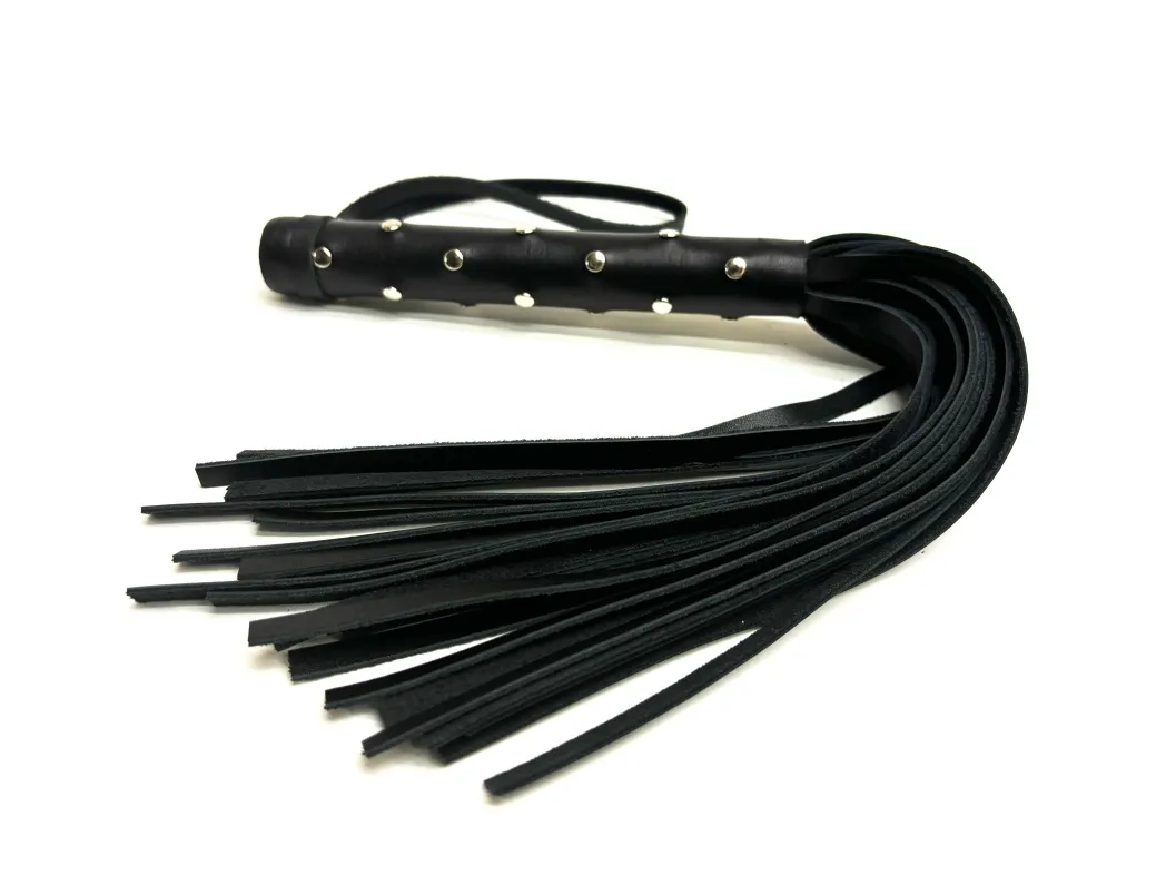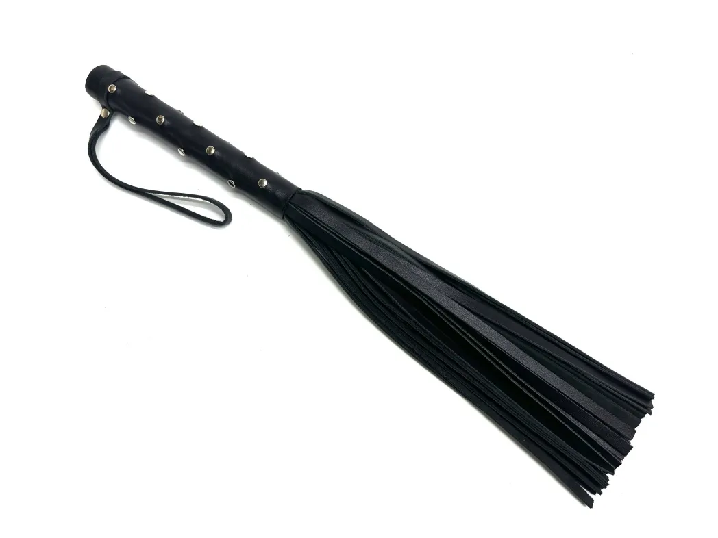 Восхитительная плеть "Звездное небо" из натуральной черной кожи - волнующий элемент для Вашей БДСМ игры. Аксессуар выполнен из качественной кожи, общая длина 43см. Плеть имеет 28 хвостов, их длина 26см. Рукоятка украшена россыпью блестящих хольнитенов, её диаметр 2,5см, для удобства имеется кожаная петелька. Плеть "Звездное небо" украсит Вашу любовную игру и подарит незабываемые приятные моменты! Материал: натуральная кожа, металл