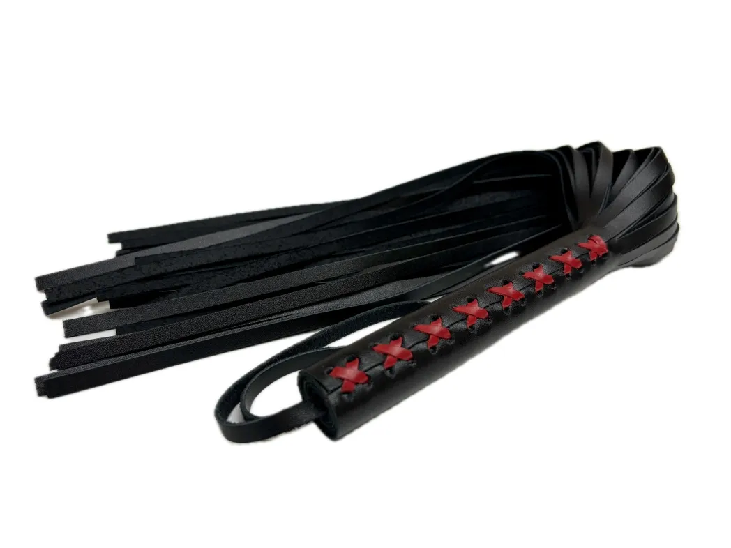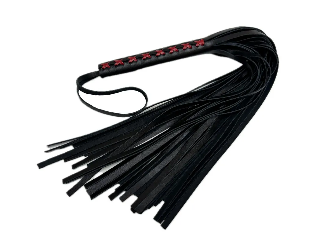 Плеть из натуральной кожи Sex Game - уникальная модель, выполненная из цельного куска гладкой натуральной кожи высокого качества, в классическом черном цвете. Плеть очень пышная и богатая, в ней 50 хвостов! На рукоятке находится плетение, выполненное красной кожей, что придает особый шарм, Общая длина аксессуара 57см, длина хвостов 40см. Благодаря своей цельной конструкции, данная плеть прослужит Вам долго, хвосты не оторвутся и сохранят свой благородный вид, аксессуар очень надежный и красивый. Для удобства на рукоятке имеется кожаная петелька. Материал: натуральная кожа