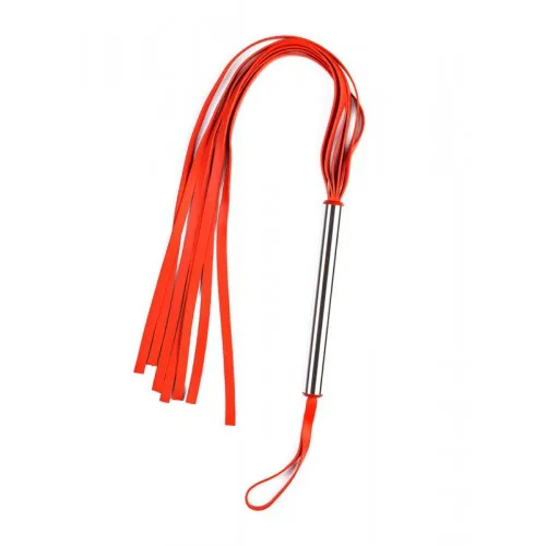 Красная плеть изготовлена из натурального латекса, имеет 12 хвостов длиной 41 см. Хвосты имеют вид лент шириной 5мм. Ручка металлическая, хромированная, длина 18,5 см. Упаковка: картонная коробка с принтом.