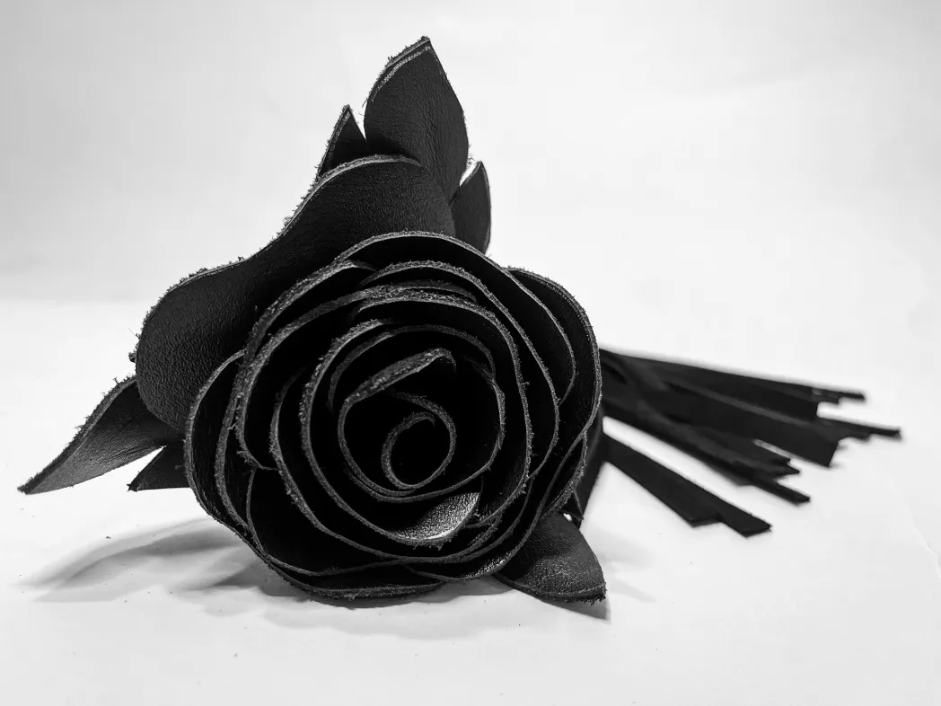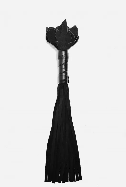Восхитительная мини-плеть, украшенная чёрной розой. Цветок и рукоятка полностью выполнены из мягкой натуральной кожи, а хвосты плети-натуральная мягкая замша. Размеры этой плети очень изящны - общая длина всего 40см, поэтому данную плеть можно использовать, как генитальную, чтобы добавить новых ярких ощущений. Розочка очень удобно лежит в руке и создает неповторимую атмосферу и настроение, этот аксессуар никого не оставит равнодушным!