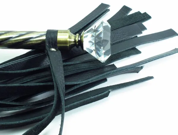 Плеть с рукояткой из натуральной кожи. Рукоятка из металла с ручкой в виде большого кристала и кожаным ремешком, Длина плети- 40 см, рукоятки- 21 см, ремешок- 16.5 см.
