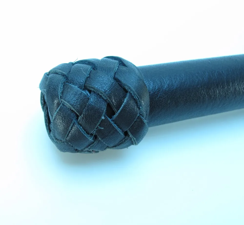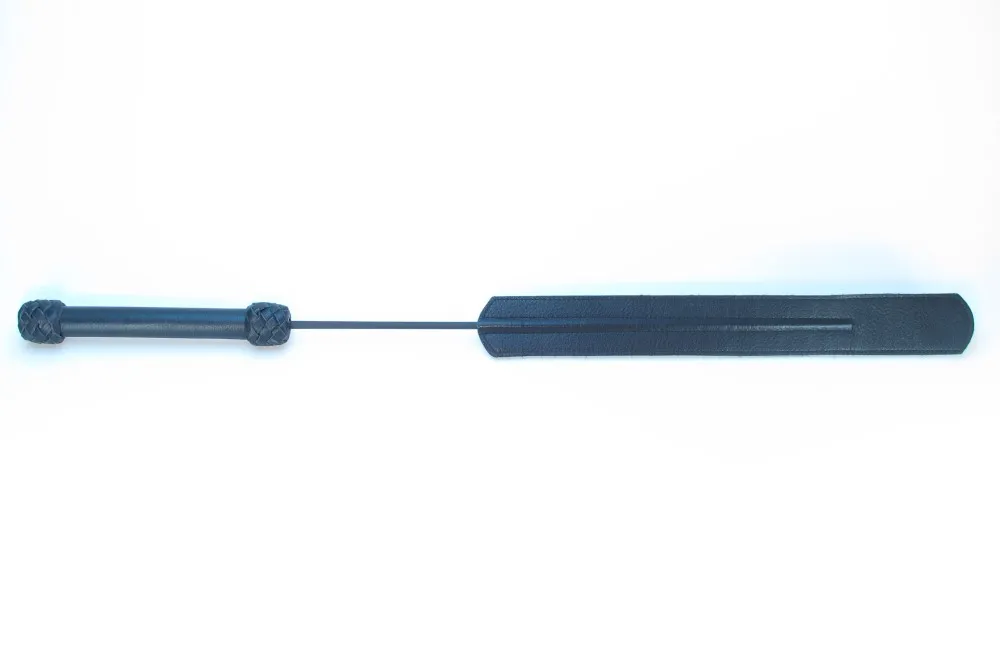 Стек сделан из прочного сердечника с оплетением из кожи. Наконечник в виде хлопушки из кожи для осуществления ударов. Девайс отлично подходит для БДСМ игр. Мягкая и гибкая конструкция позволяет избежать повреждений тела даже при сильных ударах. Характеристики: длина БДСМ девайса составляет 79 см, хлопушка сделана из подшитой кожи, шириной 5 см, длиной 40 см, рукоятка стека жёсткая. Страна - Россия. Без упаковки.
