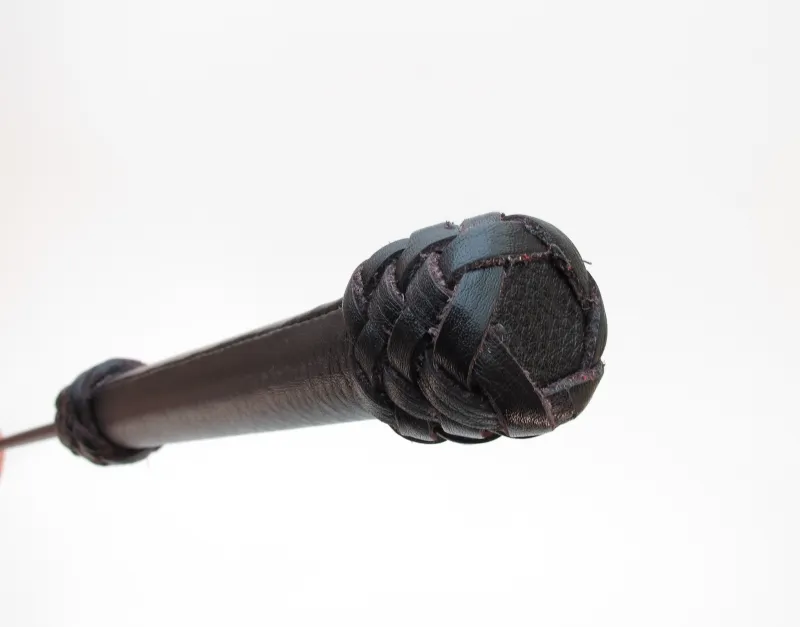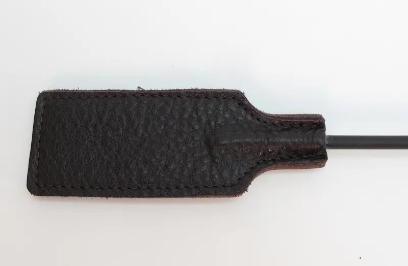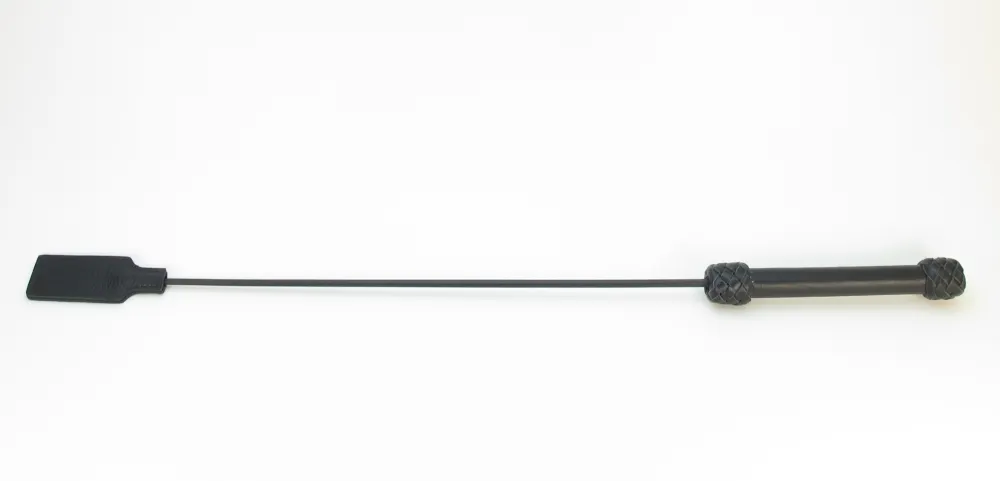 Стек сделан из прочного сердечника с оплетением из кожи. Наконечник в виде хлопушки из кожи для осуществления ударов. Также на ручке присутствует кожаная петля, которая позволяет закрепить стек при проведении наказания партнёра. Девайс отлично подходит для БДСМ игр. Мягкая и гибкая конструкция позволяет избежать повреждений тела даже при сильных ударах. Характеристики: длина БДСМ девайса составляет 73 см, хлопушка сделана из подшитой кожи, шириной 4 см, длиной 11 см, рукоятка стека жёсткая, обшита кожей. Страна - Россия.