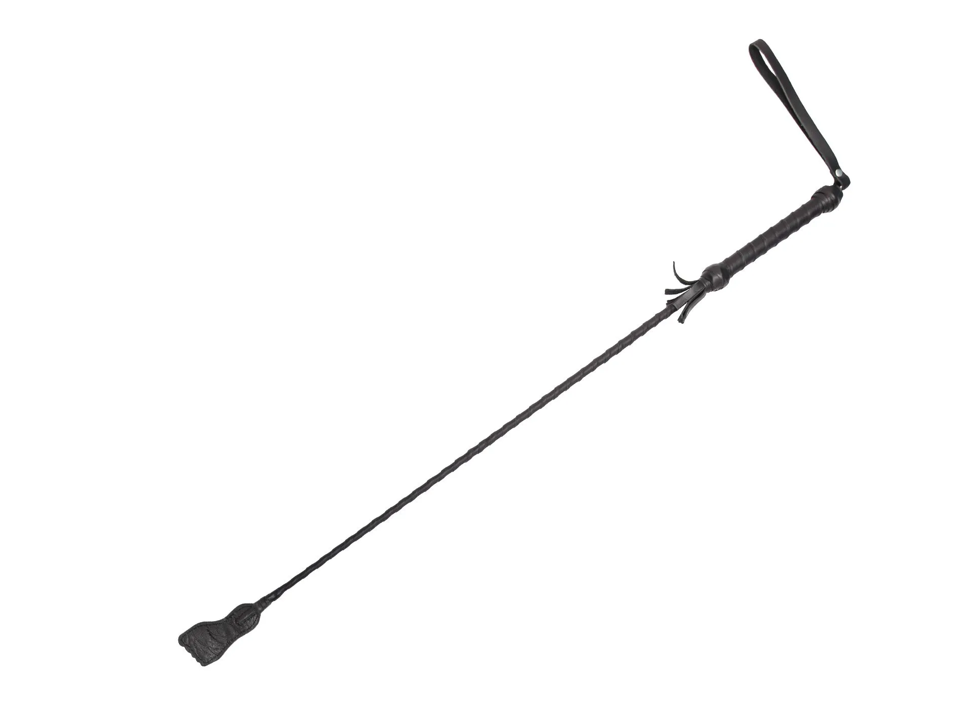 У этого стека гибкое основание, овитое черными лакированными полосками, и наконечник в виде ступни длиной 10 см. Также у стека есть удобная рукоять с петлей для надевания на руку.