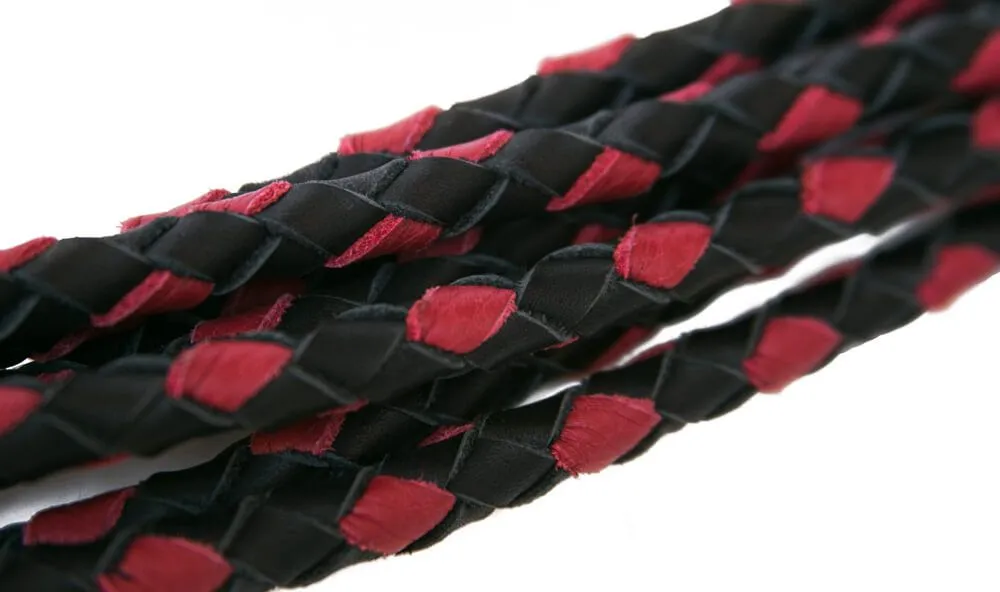 Эта стильная плетка из тонких кожаных косичек в умелых руках способна подарить немало моментов, будоражащих кровь. Удобная рукоять оплетена красной кожей комфортно ложится в ладонь. Семь хвостов оснащены тонкими хвостиками – вы можете лишь слегка пощекотать партнера, а можете полноценно отхлестать его, в полной мере проявив свою доминантность. Плеть станет достойным аксессуаром любой коллекции интим-игрушек.