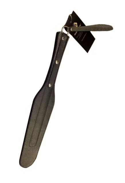 Спанкер от компании "Подиум" выполнен из черной матовой кожи в форме "лопатки", а его рукоять украшена металлической фурнитурой. У него есть пружинящая вставка из полимерного материала, которая придает ему гибкость. Такой аксессуар можно использовать для работы по ягодицам и по верхним мышцам внутренней стороны бедра. Один только внешний вид оставляемого от удара следа будоражит воображение и обостряет ощущения обоих партнеров! Спанкер прост в применении и безопасен, однако во избежание травм не рекомендуется наносить удары ребром.