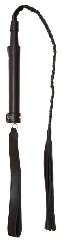 Эта великолепная плетка со множеством хвостов, заплетенных в тугую косичку, подарит Вам и Вашему партнеру много ярких ощущений. Плеть выполнена из натуральной кожи черного цвета, на ее ручке есть петелька, чтобы ее было удобно держать. Ручка с петелькой удобно лежит в руке, а на ее конце есть украшение в виде шипов, которое добавляет аксессуару немного агрессивности. Россыпью кожаных хвостов можно как раздразнить партнера, слегка поглаживая его, так и нанести более ощутимые удары, заставляя его забыться от острых, но приятных ощущений.