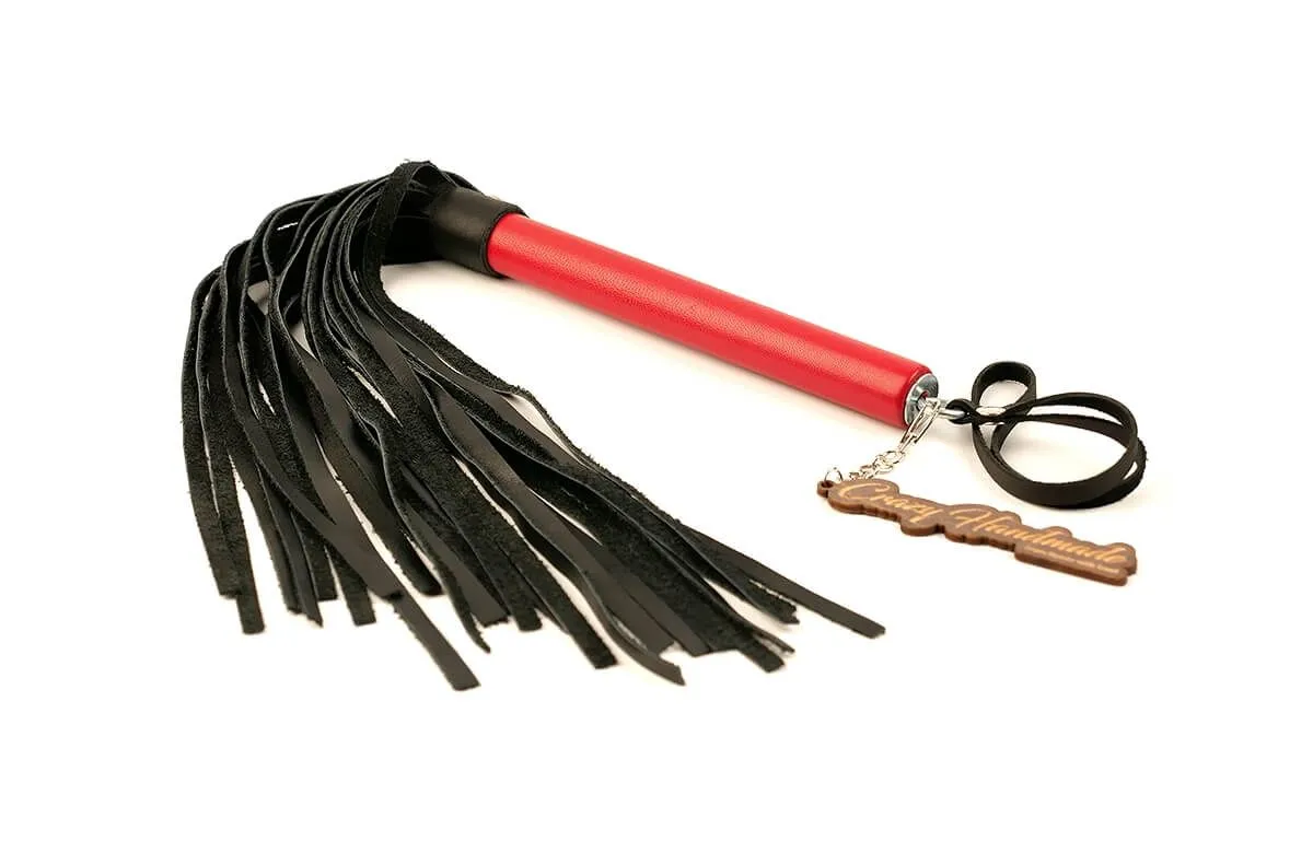 Плеть выполнена из натуральной кожи красного и черного цветов. На ручке имеется кожаная петелька для запястья, благодаря которой плеть не выскользнет из Ваших рук.