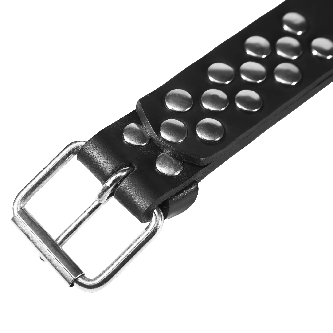 Мягкий спанкер выполнен из черной матовой кожи в виде ремня. "Ручка" украшена пряжкой.
