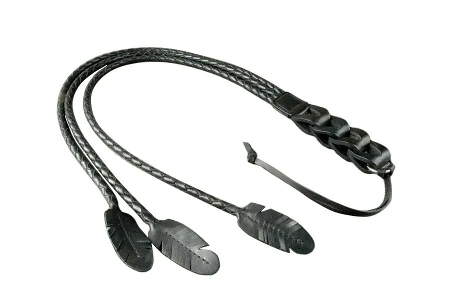 Плеть "Три пера" от российского бренда Beastly сделана из натуральной кожи в оригинальном дизайне с тремя хвостами, каждый из которых оканчивается шлепком в виде пера. На ручке предусмотрена петелька для фиксации на руке. Несмотря на такой дизайн, ассоциирующийся с легкостью и воздушностью, порка этой плетью может быть довольно чувствительной. Каждый удар будет сопровождаться характерными шлепками о кожу и оставлять после себя горящими приятным огнем следы.