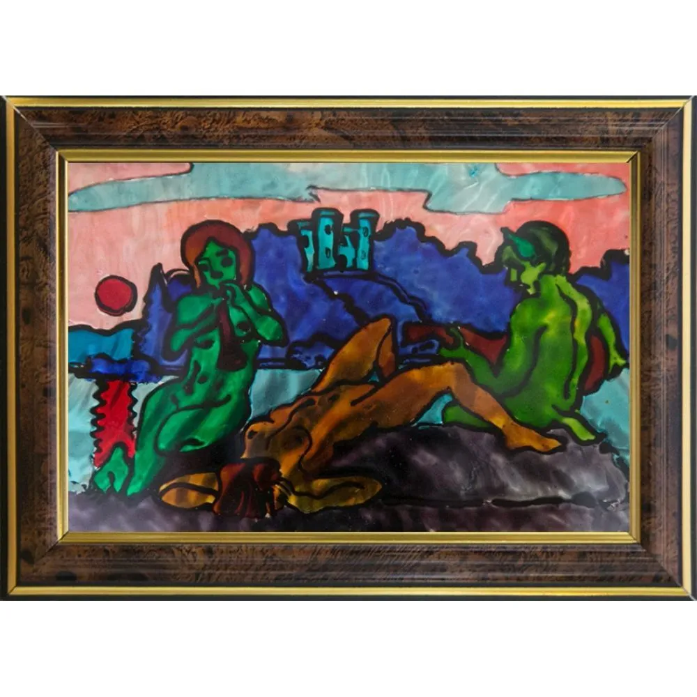 —Картина ЮРОВ АЛЕКСЕЙ "Тройственный союз" стекловитражная краска 10х15 2016