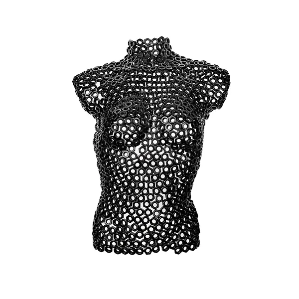 Металлический женский бюст выполненный в современном стиле станет оригинальным дополнением вашего интерьера и определённо будет притягивать к себе взгляды. Добавьте подходящую подсветку, несколько деталей и у вас дома будет настоящая современная инсталляция.