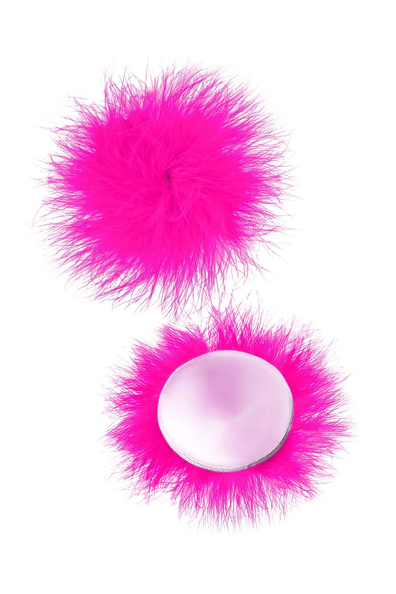 Наклейки на соски многоразовые. Однотонные. Основание выполнено из полиуретана, внутри — слой силиконового геля. Декор: искусственная кожа, пух. Размер основания: 5 см. Наклеивать на чистую кожу без следов косметических средств. Снимать осторожно. После использования внутреннюю сторону промыть теплой водой. Хранить, изолировав клейкий слой пленкой или приклеив к стеклянной поверхности (зеркалу). Не использовать при гиперчувствительности к силикону, нарушениях пигментации или повреждениях кожи груди.