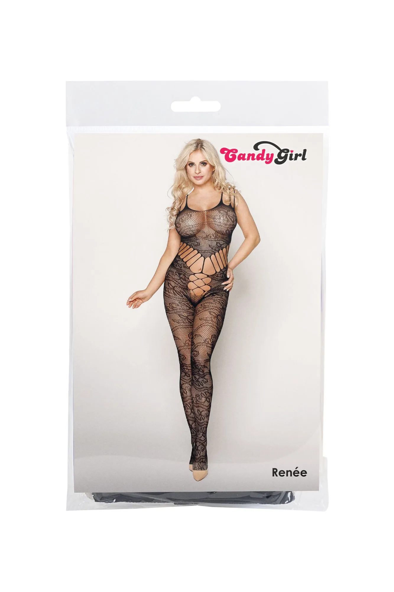 Эластичный комбинезон из ажурной бесшовной сетки без интимного доступа Candy Girl® Renée подчеркивает талию, выборочно открывает чувственные зоны на спине. Усиленные носочки обеспечивают комфорт при ношении.