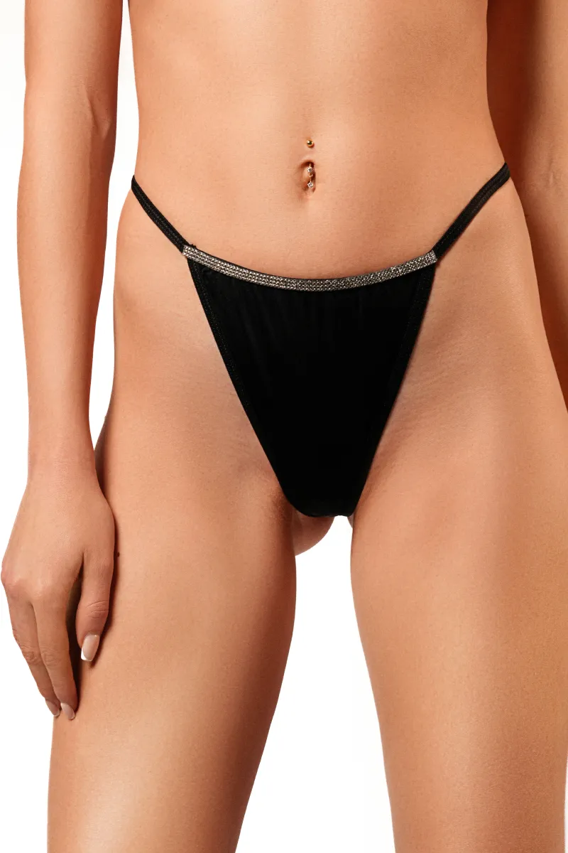 Сексуальные атласные трусики-стринги с кристаллами. Роскошные и очень комфортные одновременно, они подчеркнут вашу женственность и прдадут образу изящности.